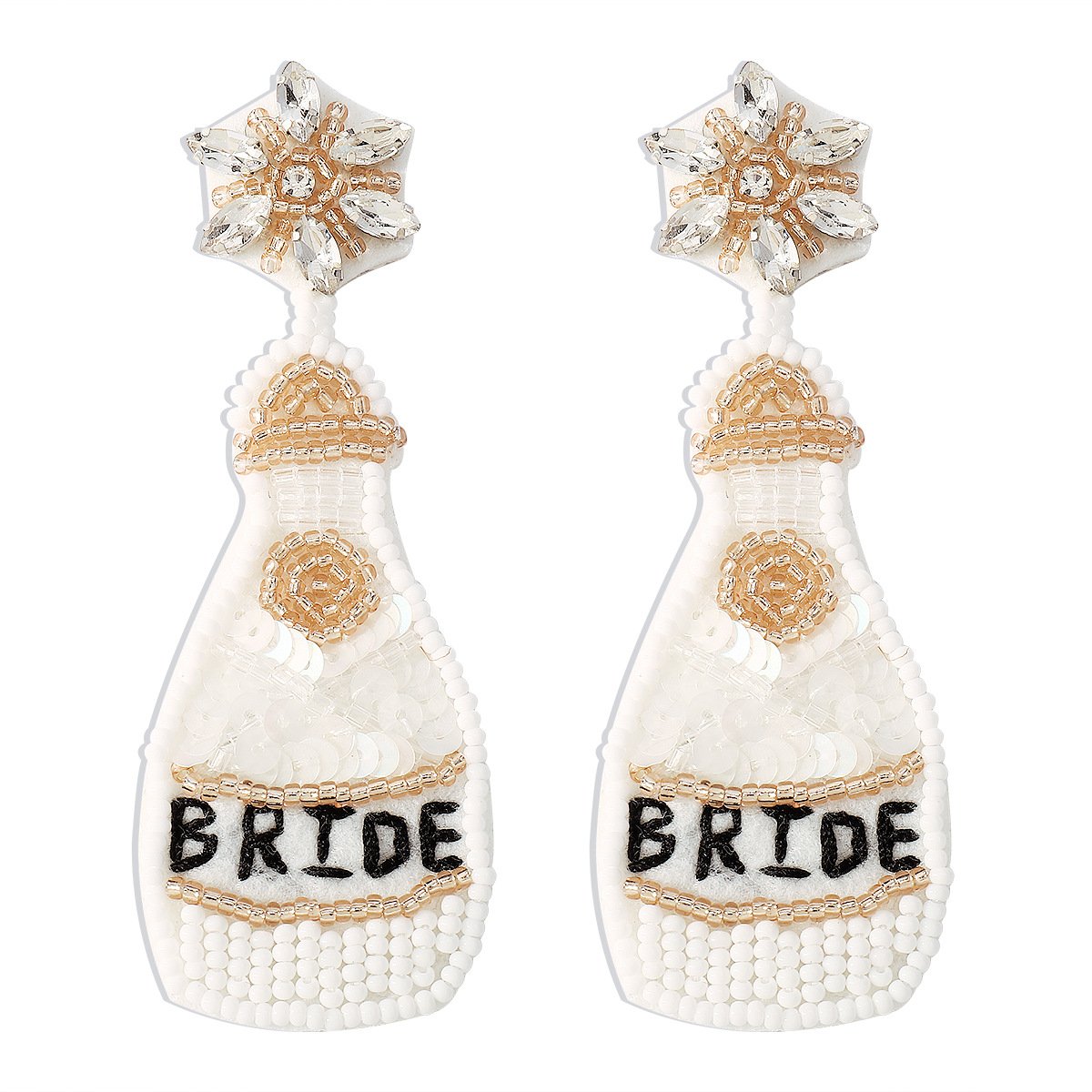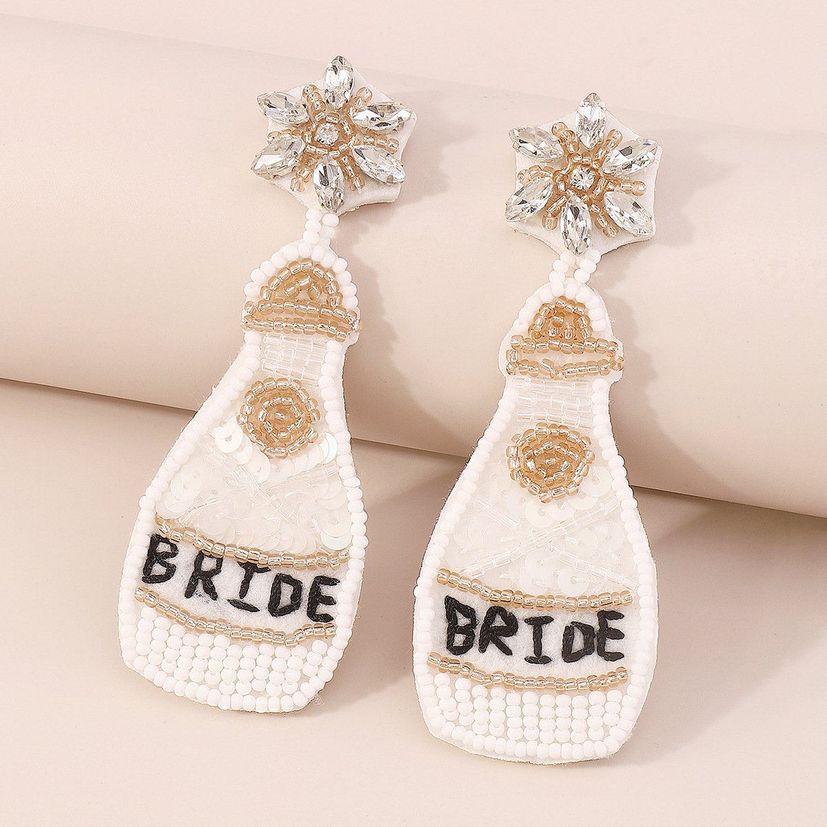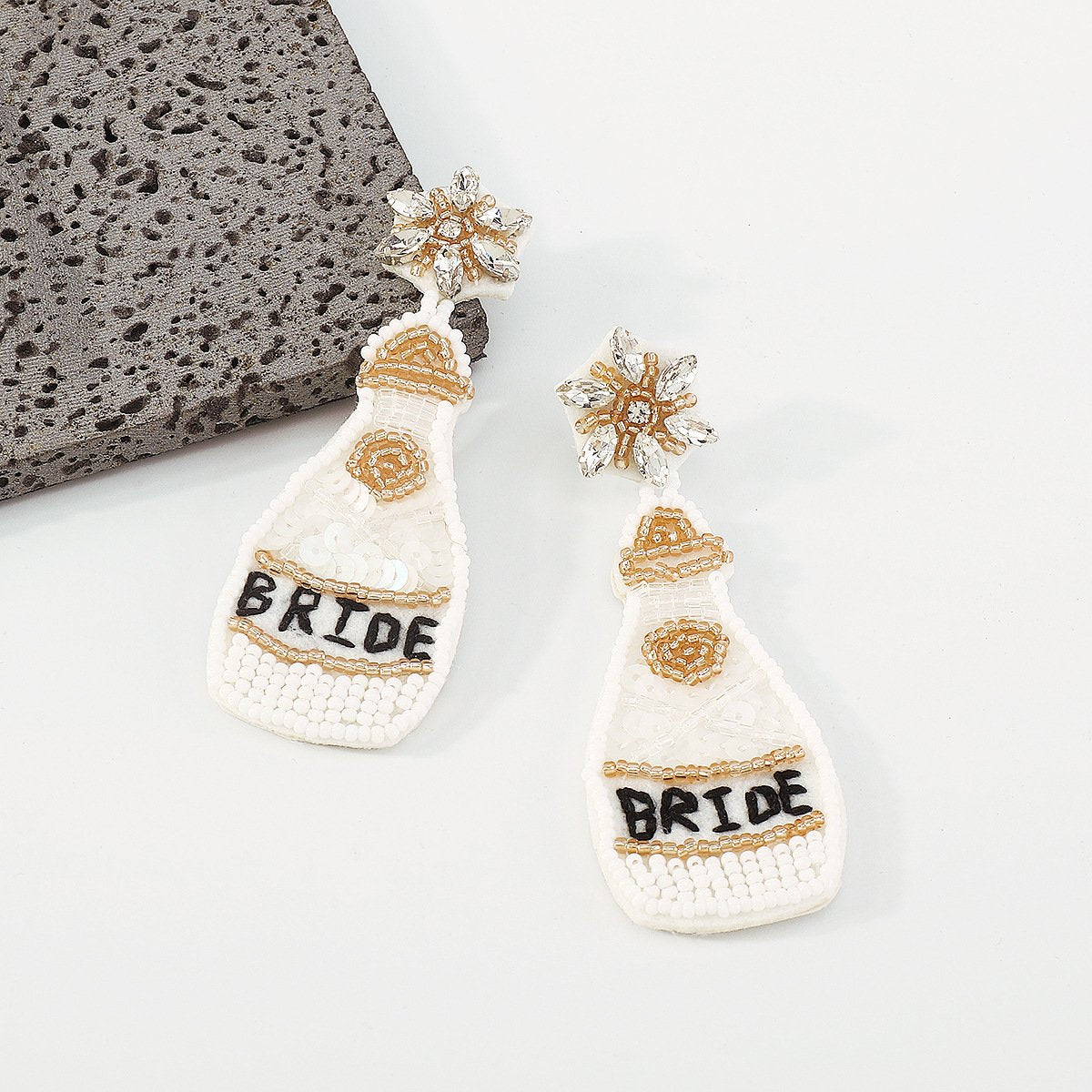 1839 Jewelry Champagne Cup Alphabet Beaded Rhinestone Earrings Creative Personality Handwoven Earrings