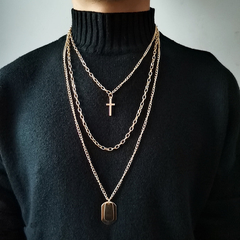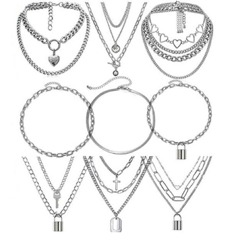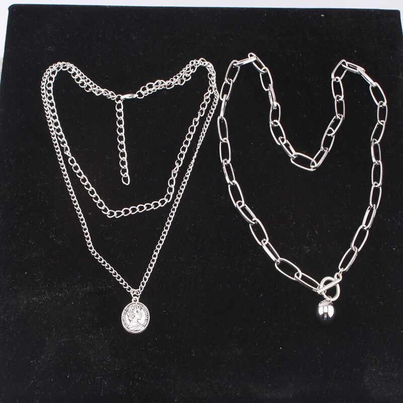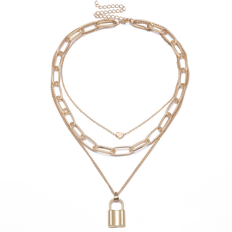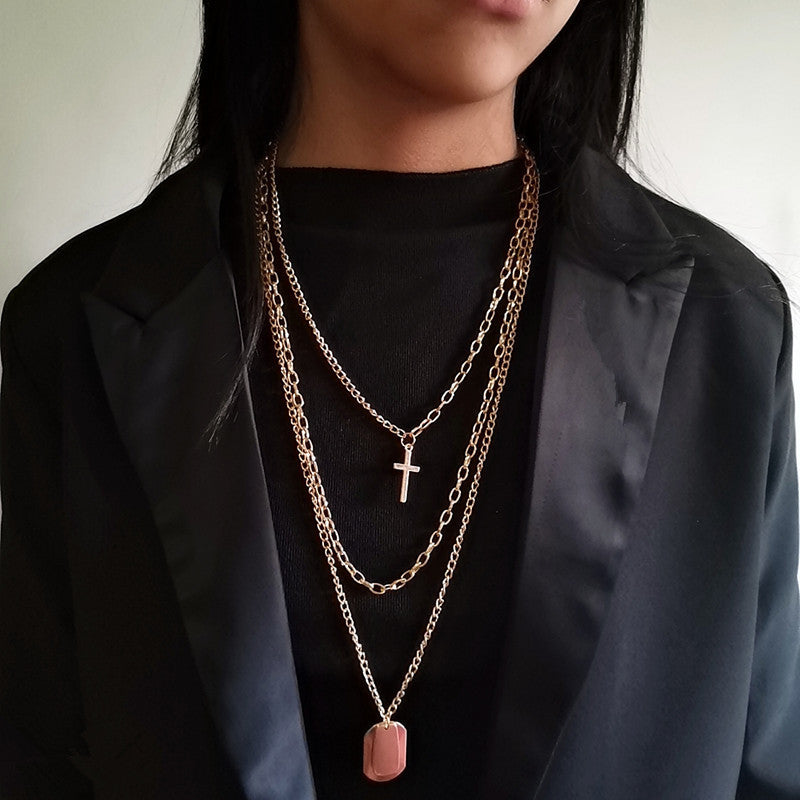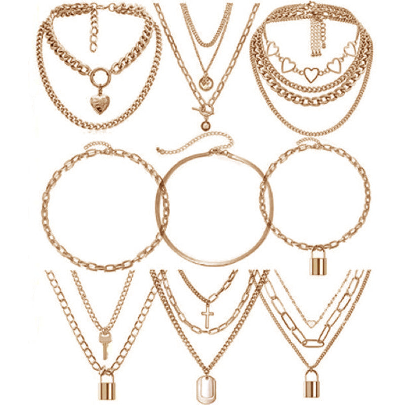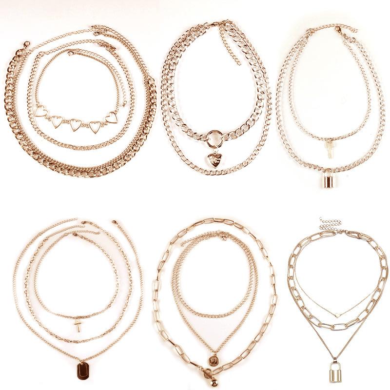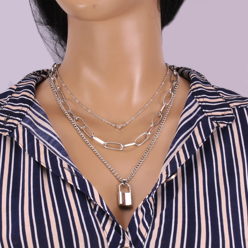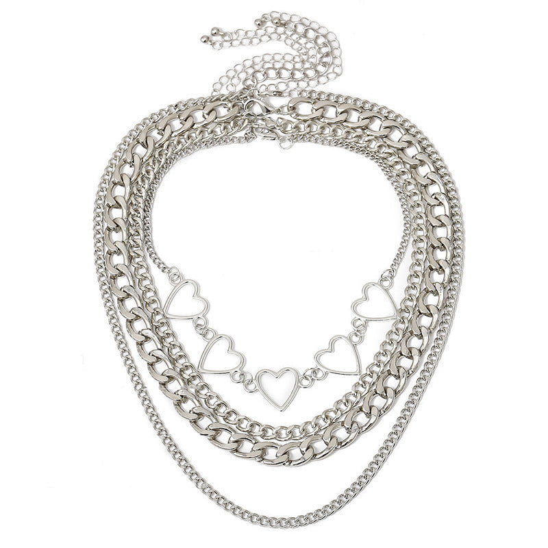 Accessories Fashion Chain Cold Necklace Multi-element Geometric Peach Heart Temperament Necklace Set Chain