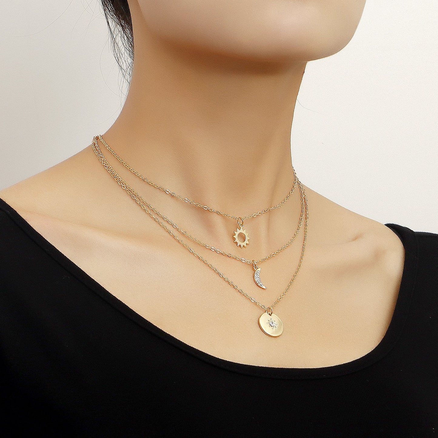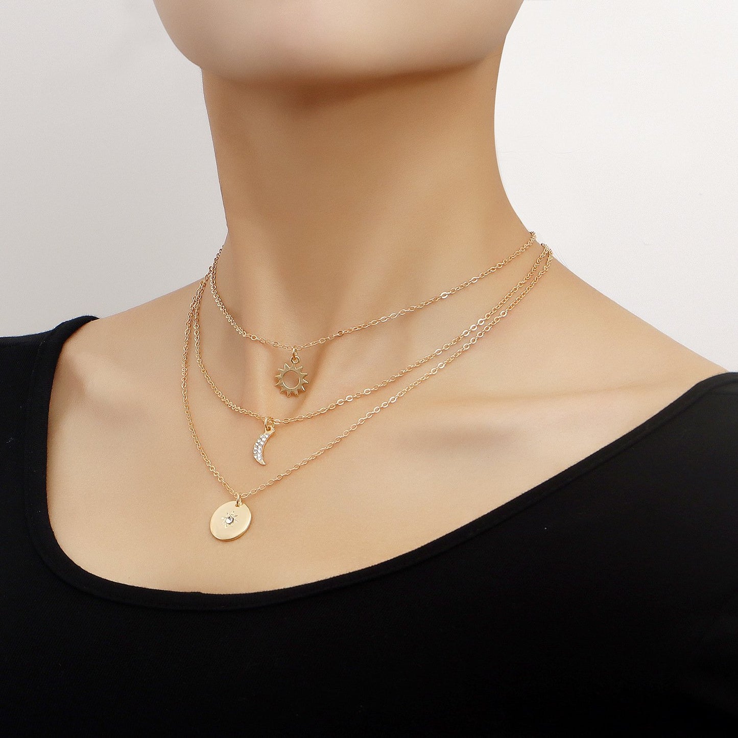 Accessories light luxury niche design sense three-layer sweater chain high-end sense star moon necklace