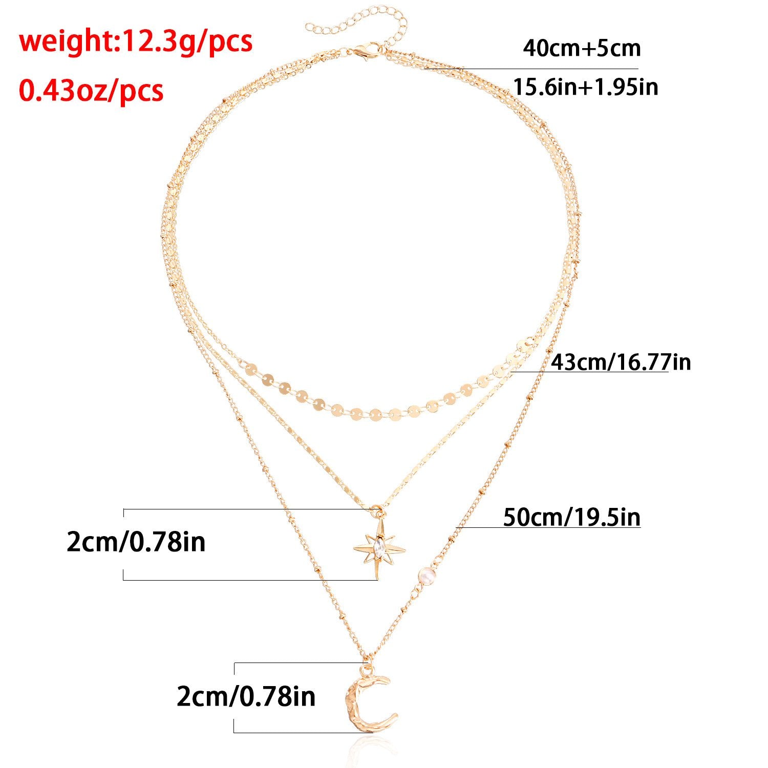 Accessories Simple and Versatile Star Moon Necklace Trendy Tassels Multi-layered Necklace Women