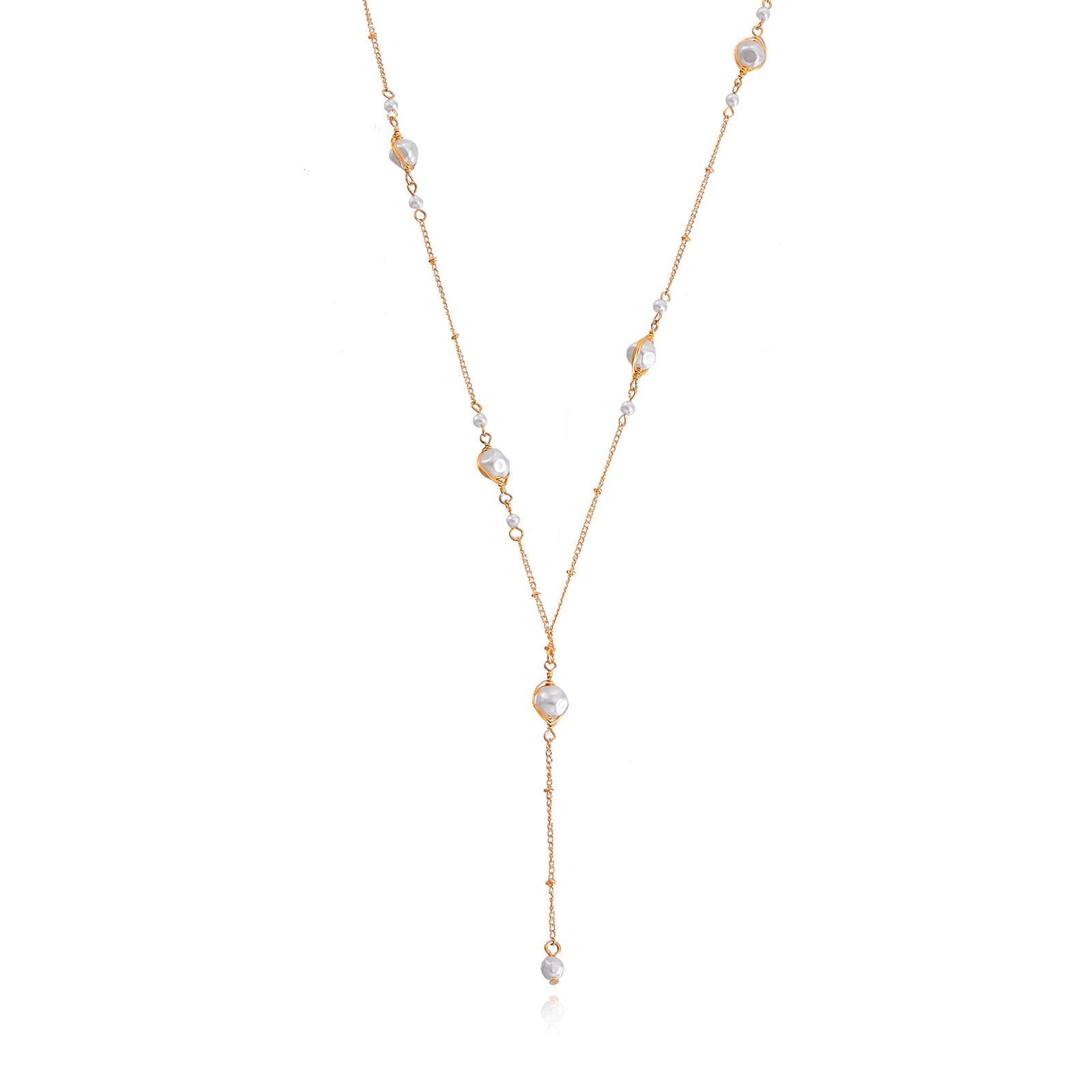 Autumn and winter trendy imitation pearl pendant sweater chain necklace female all-match niche design cold collarbone chain accessories