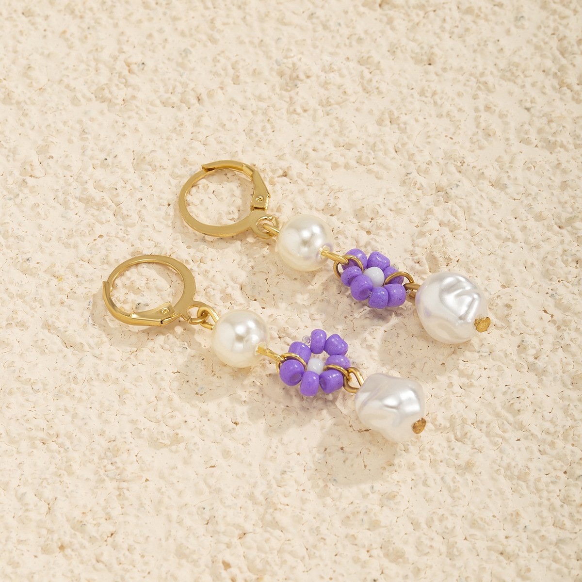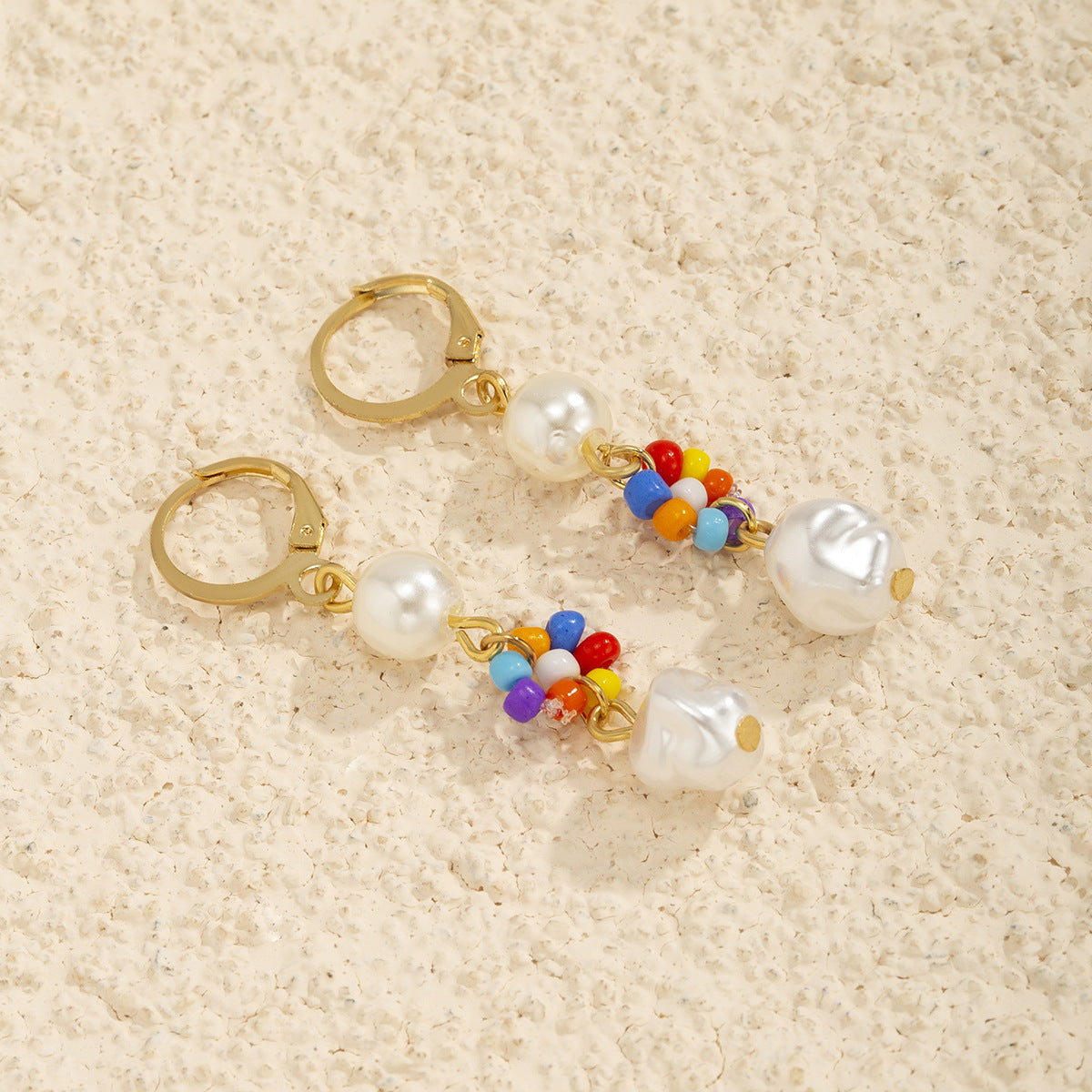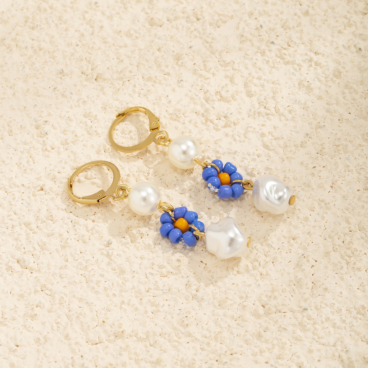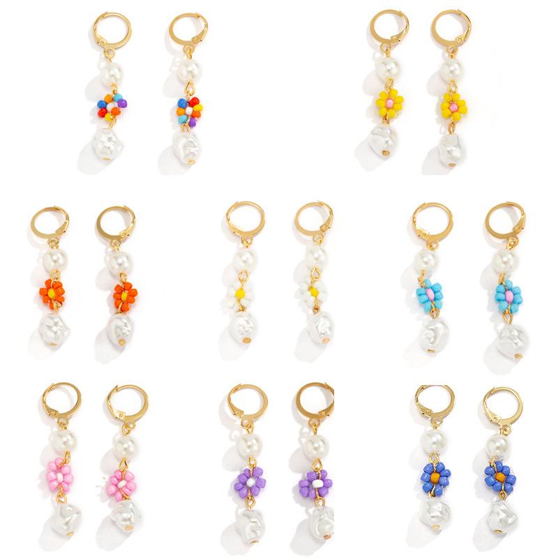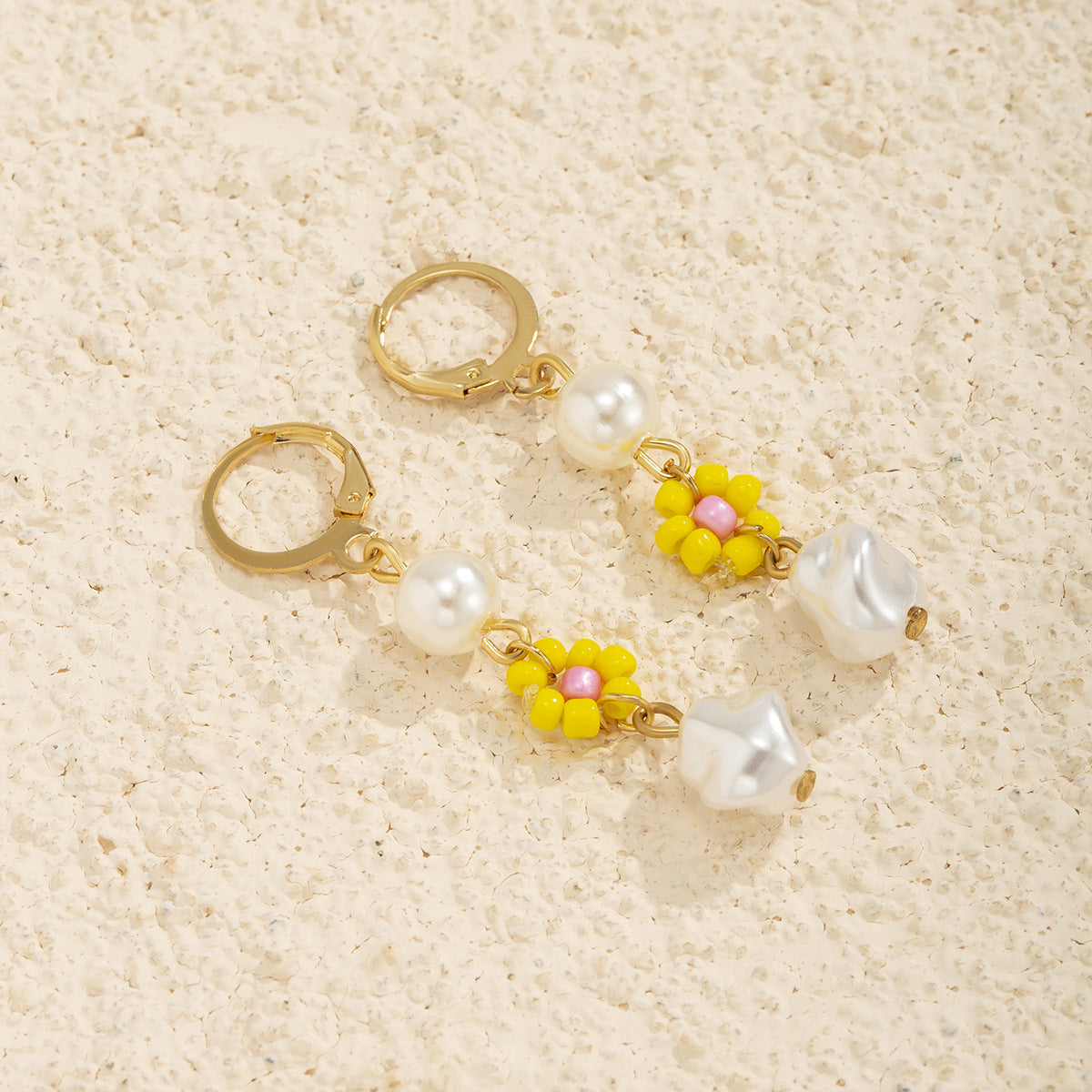 Baroque special-shaped imitation pearl pendant earrings ethnic small daisy flower rice bead earrings