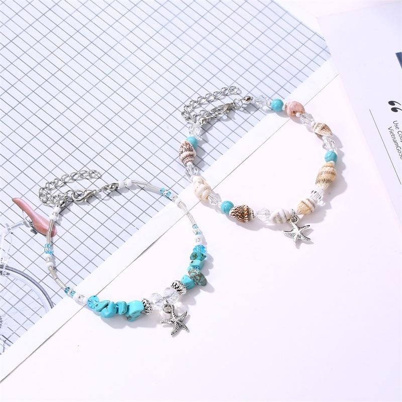 Bohemian Fashion Starfish Bracelet Natural Stone Conch Beaded Shell Anklet Ocean Beach Collection Jewelry