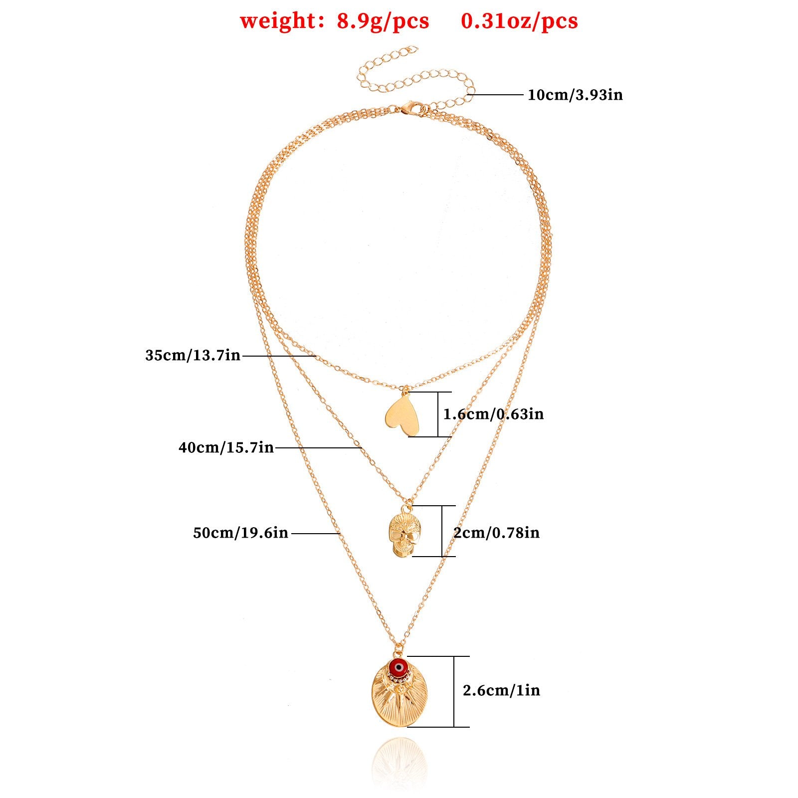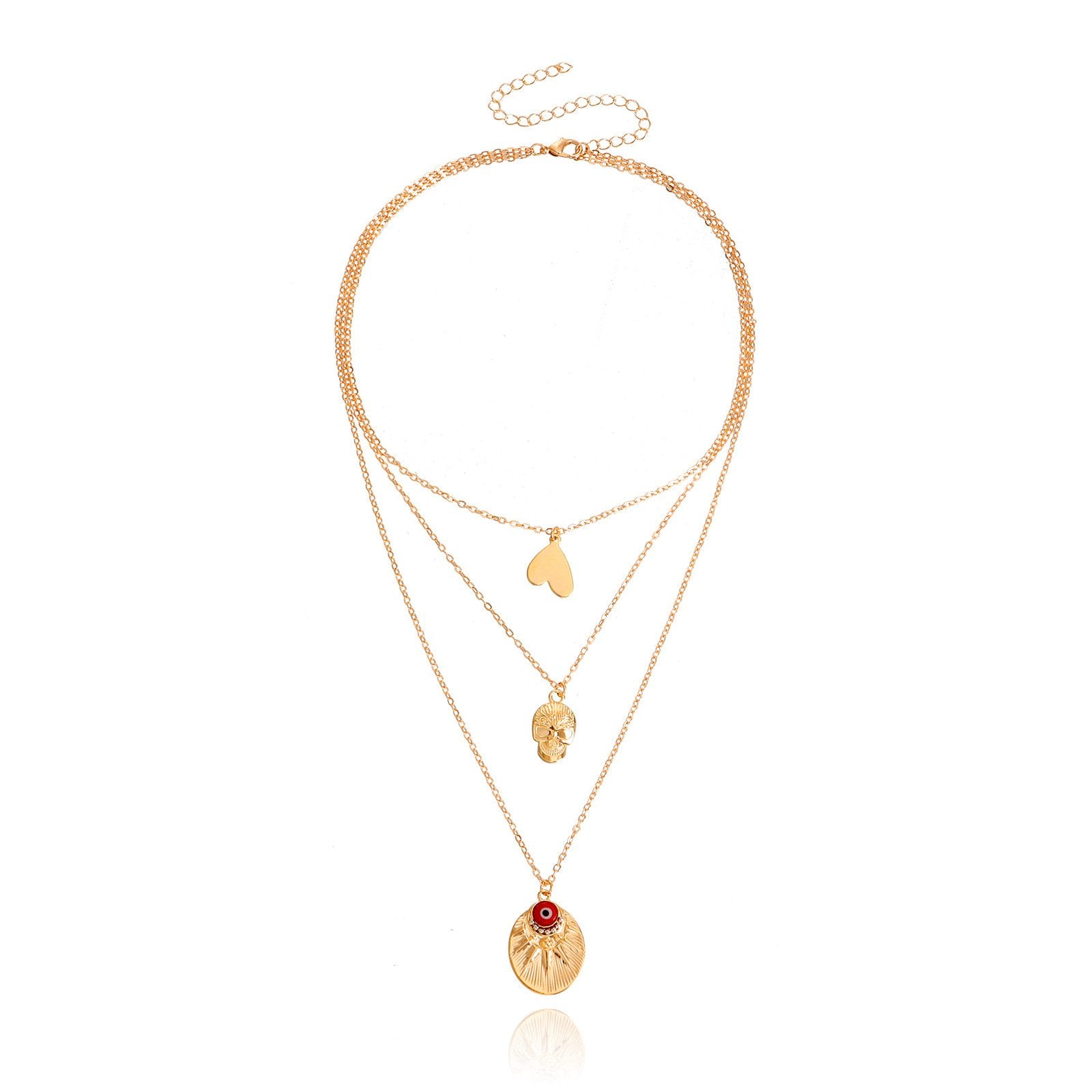 Creative Jewelry Fashion Simple Multilayer Skull Necklace Female Retro Alloy Heart Pendant Necklace