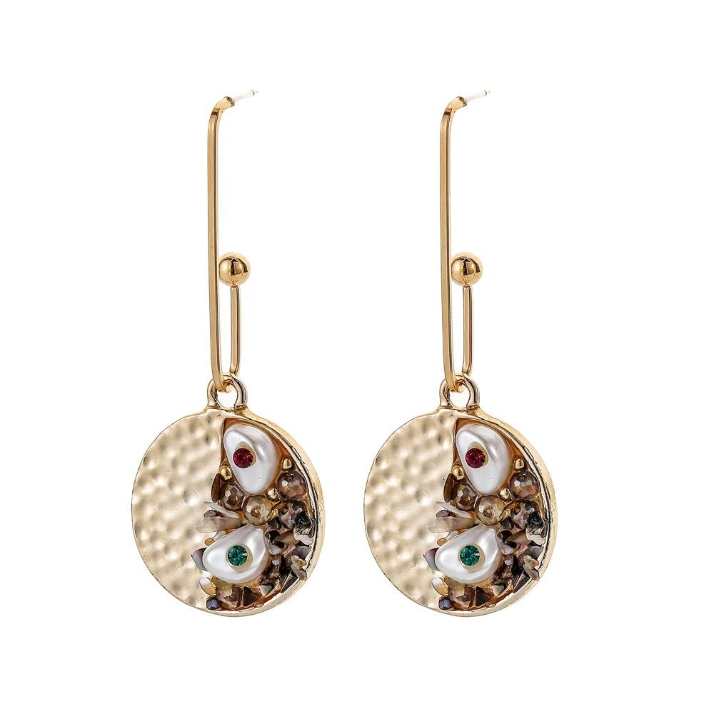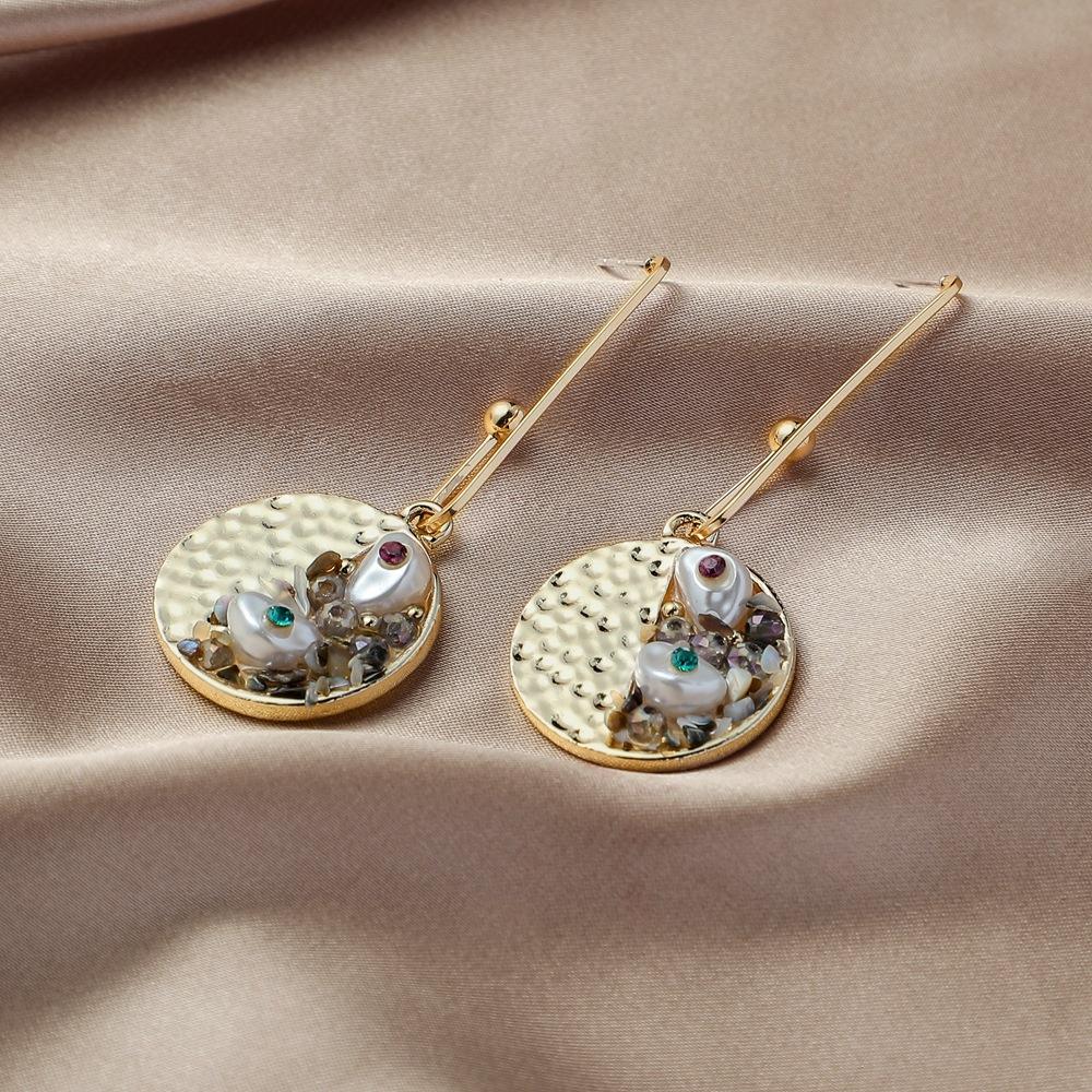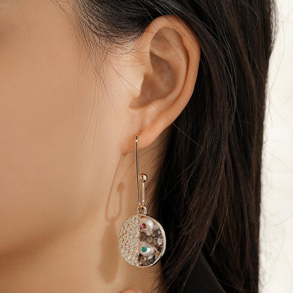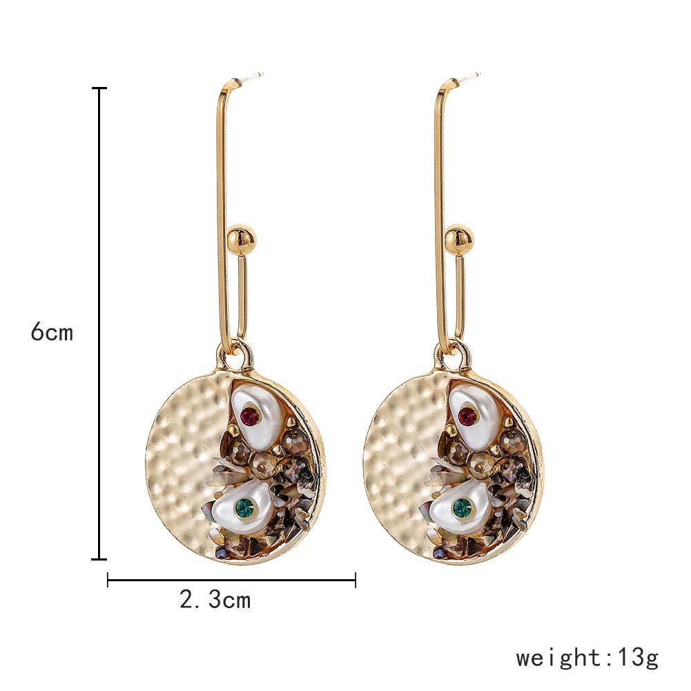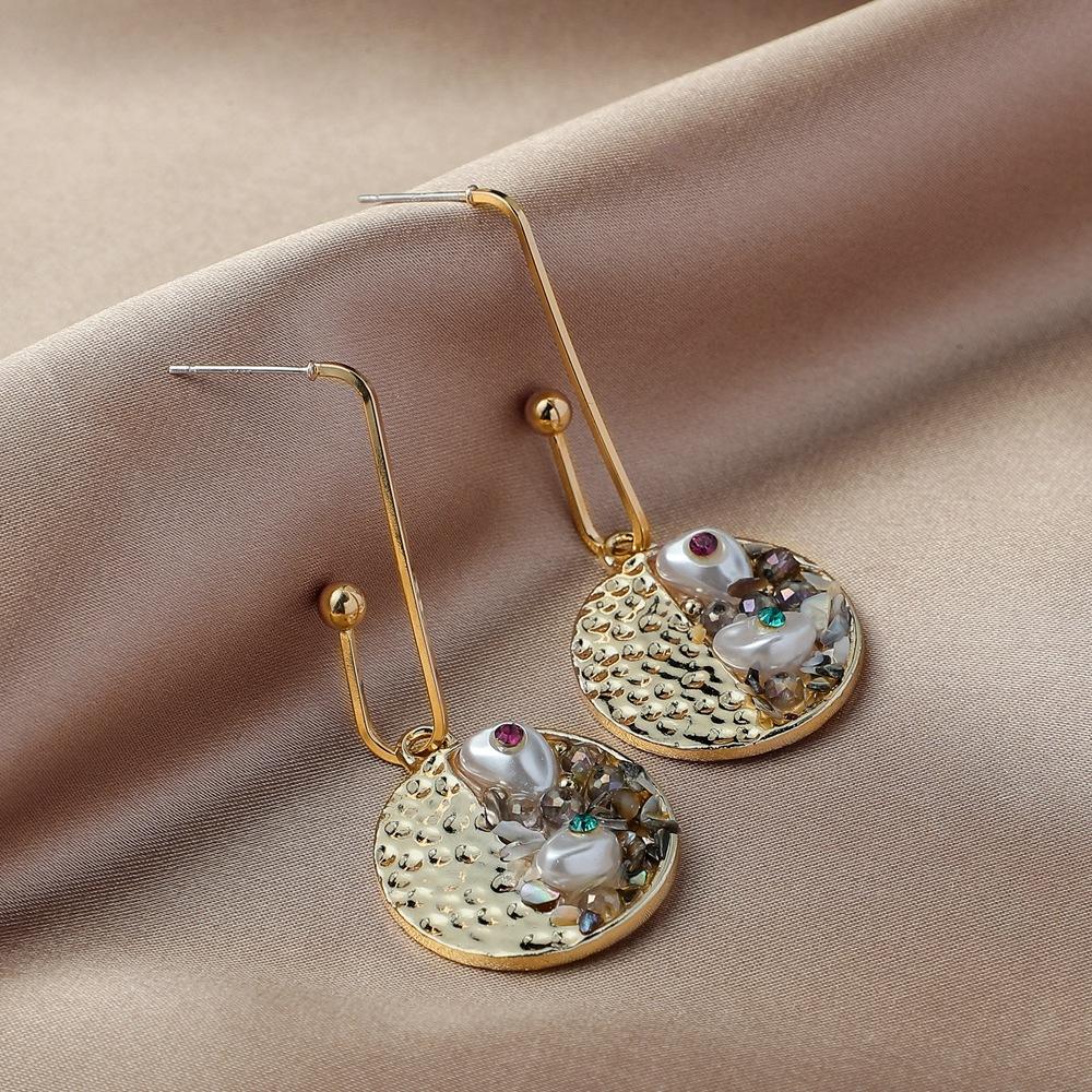 Creative Retro Baroque Gravel Pearl Round Earrings Temperament Long Paper Clip Diamond Earrings