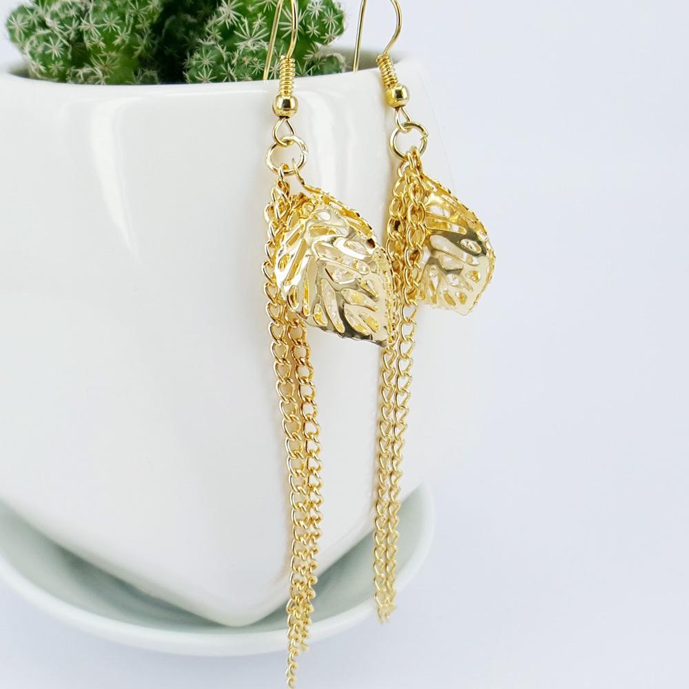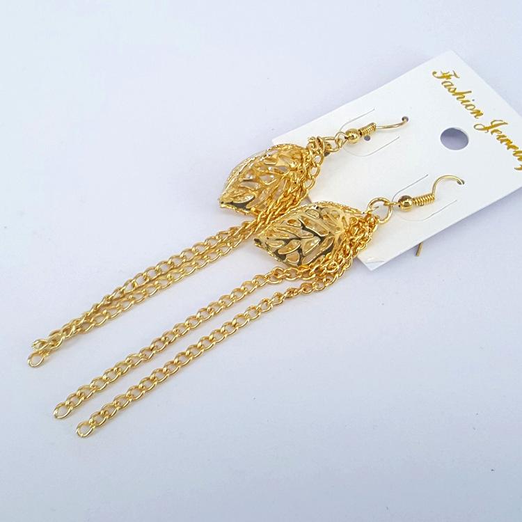 Direct Supply Hollow Long Tassel Earrings Earrings Leaf Creative Earrings Alloy Ear Jewelry Earrings