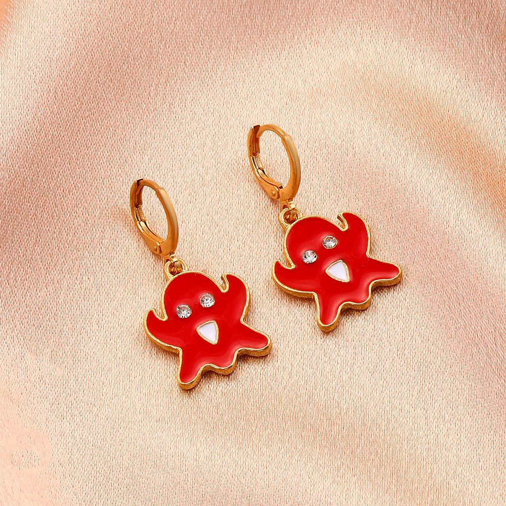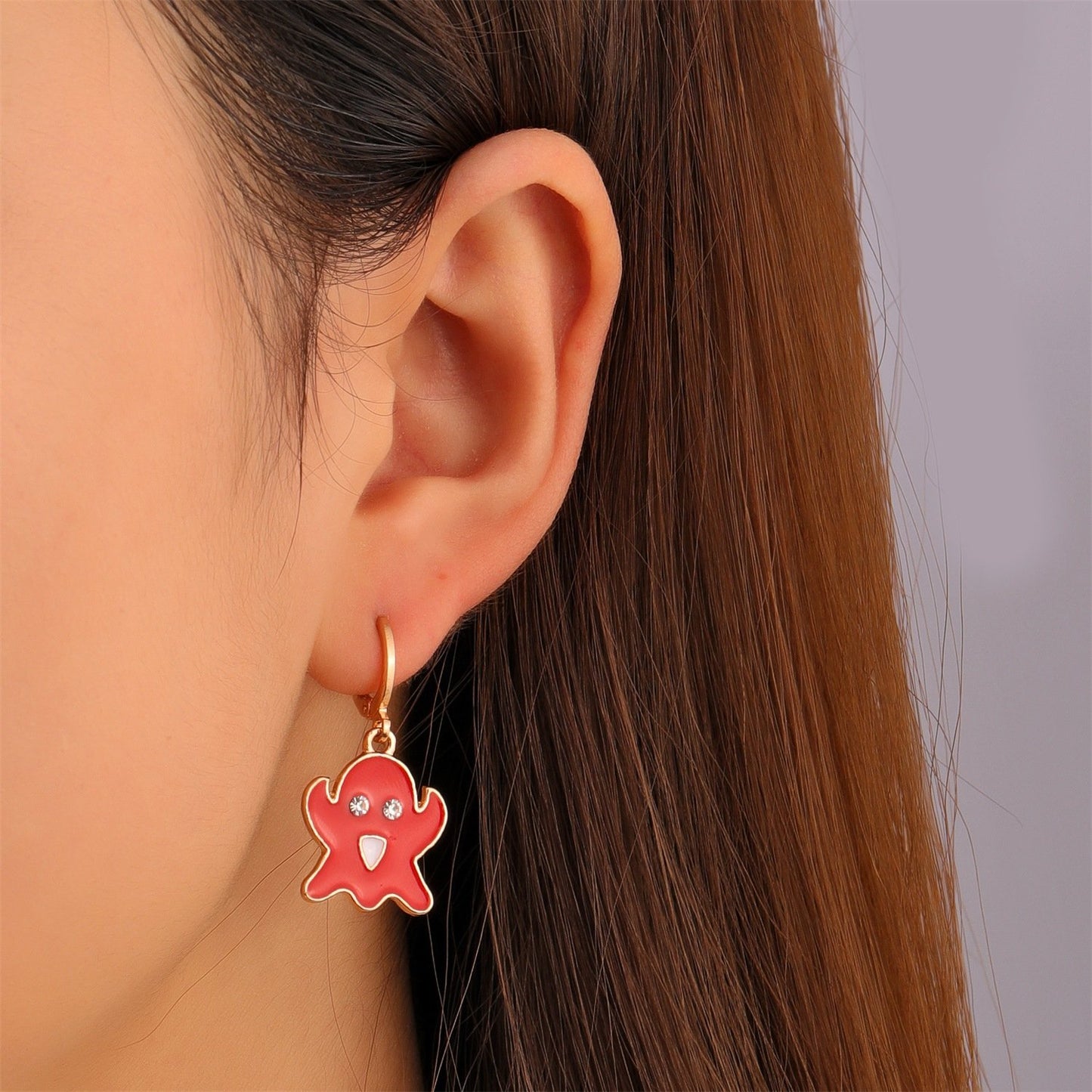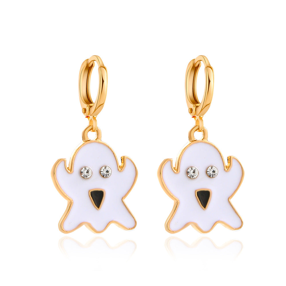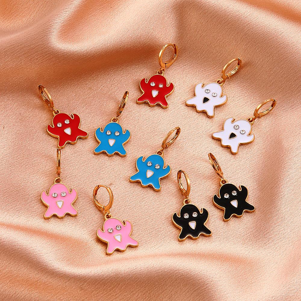 Drip oil color ghost earrings exaggerated funny alloy cartoon ghost face earrings Halloween gift