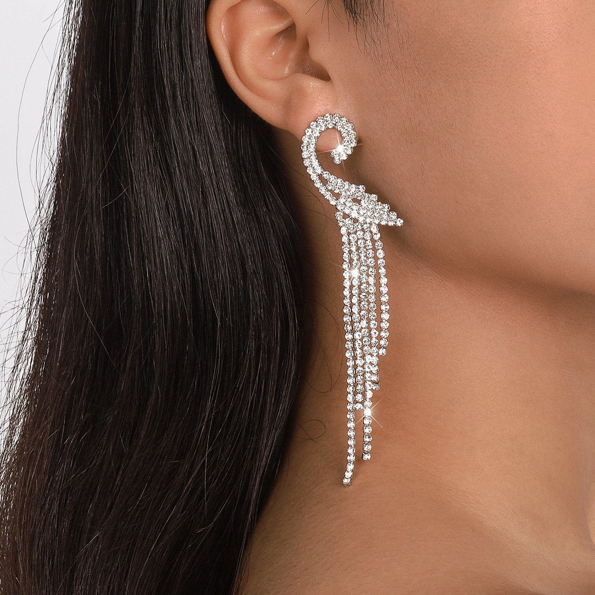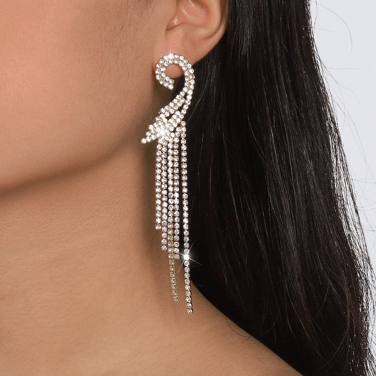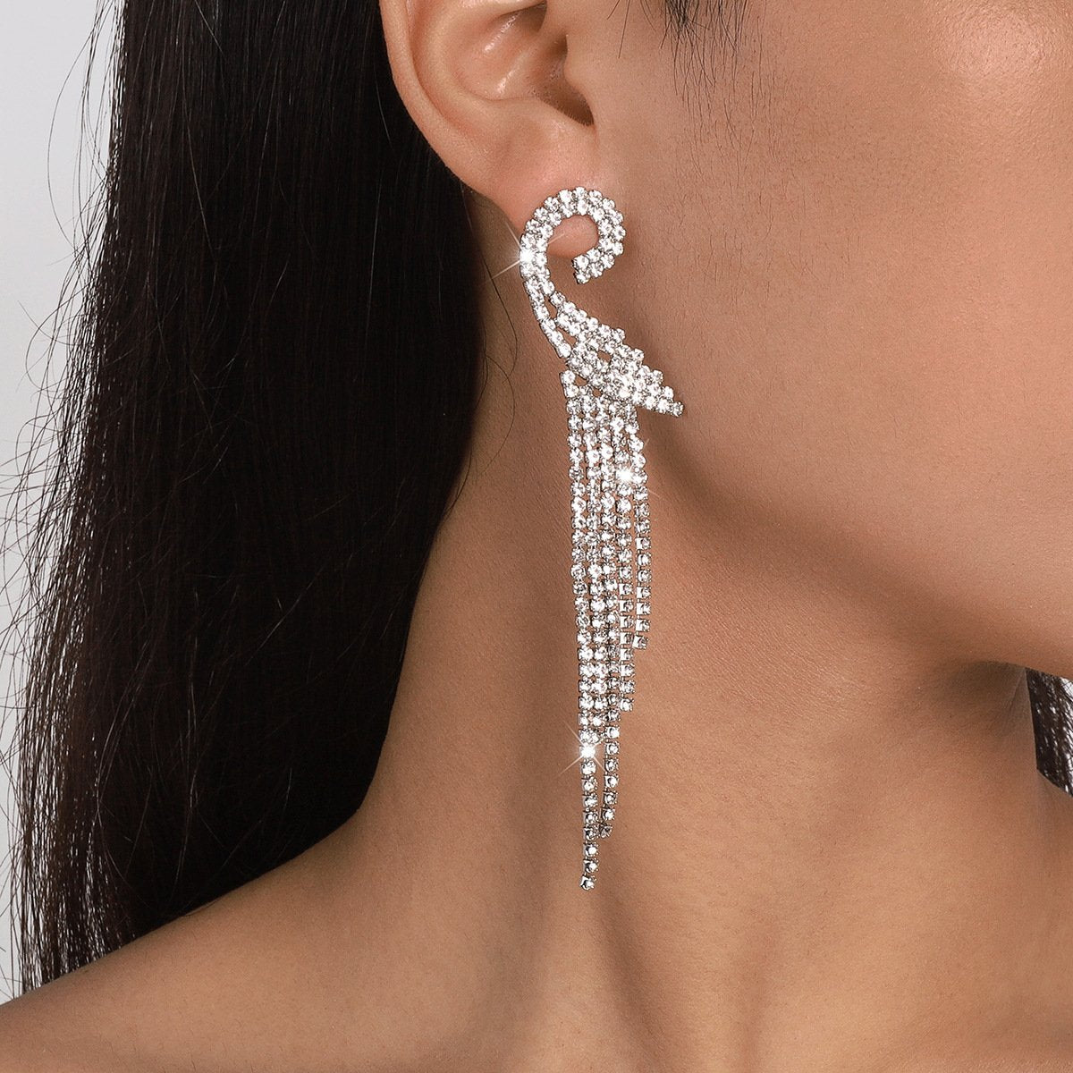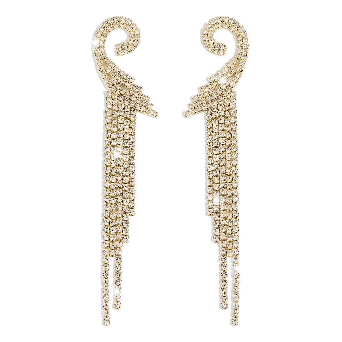 E1563 Jewelry Geometric Symmetry Tassel Rhinestone Earrings Niche Design Sense Fashion Earrings Women
