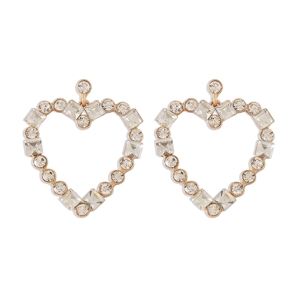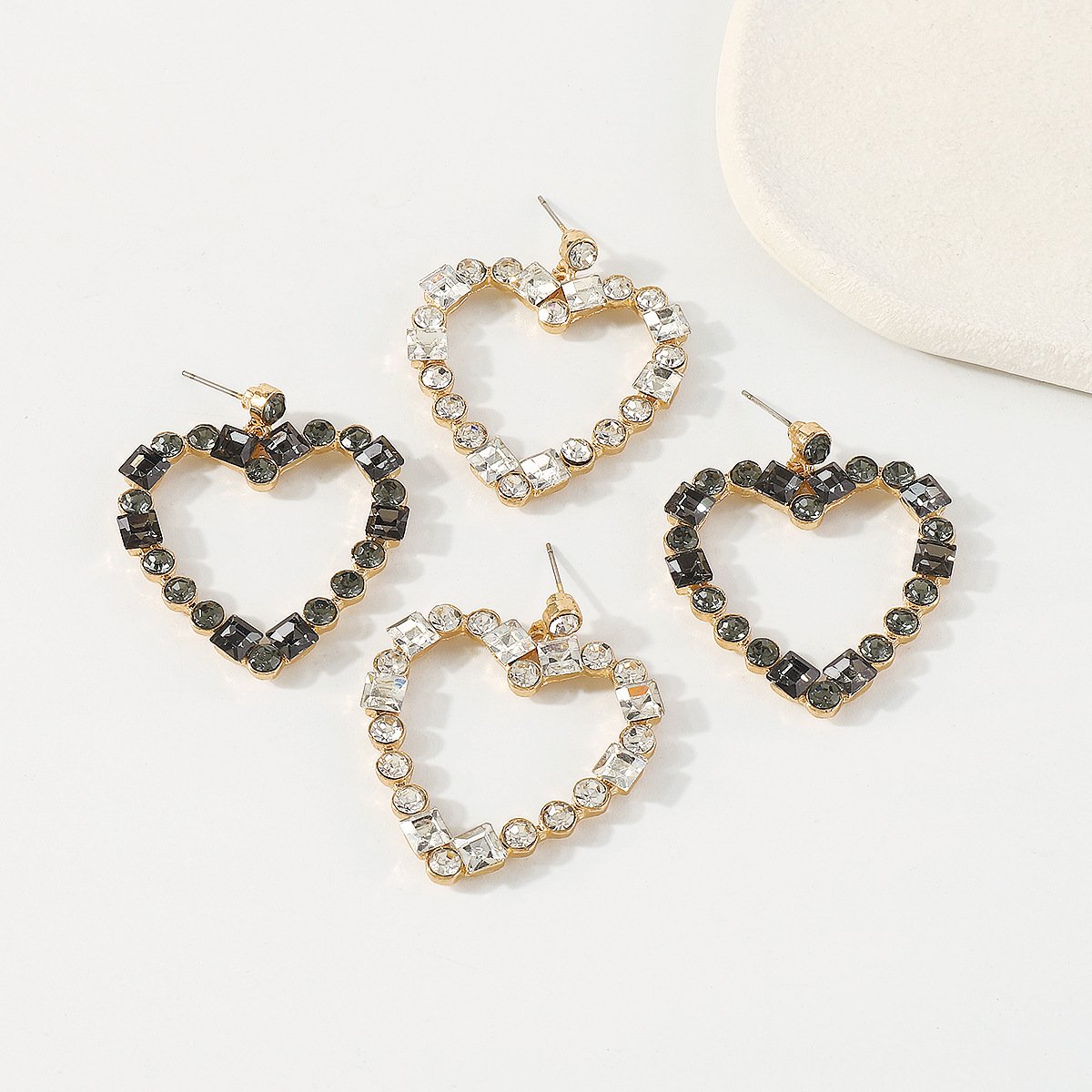 E162 Jewelry Heart Hollow Air Rhinestone Earrings Niche Elegant Sweet Earrings Women