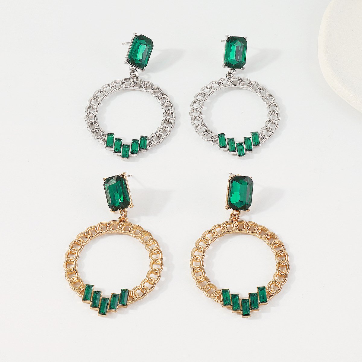 E1775 jewelry personalized hollow circle chain retro earrings micro-inlaid simple retro earrings