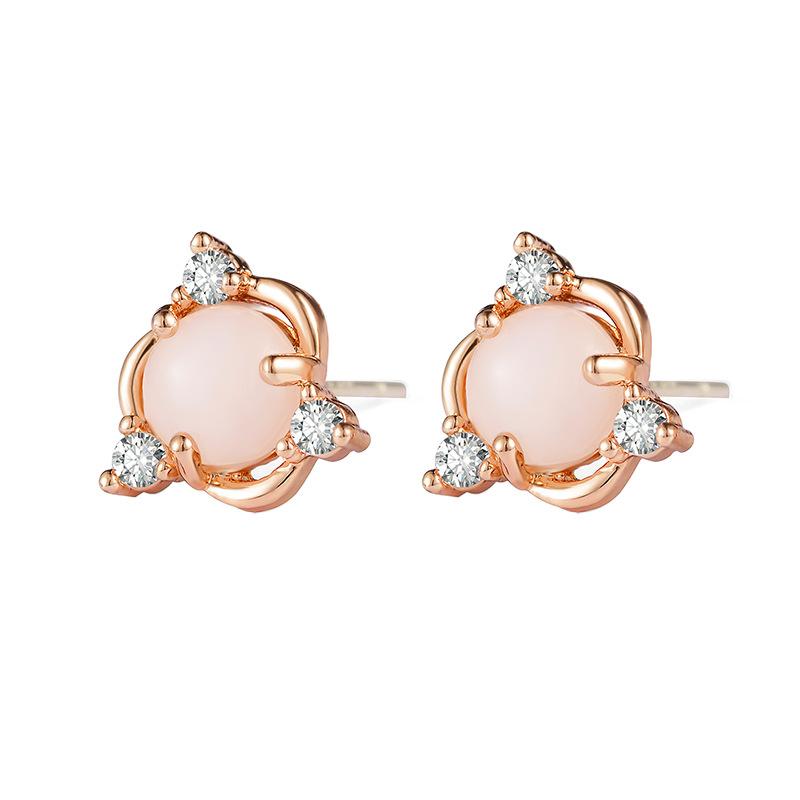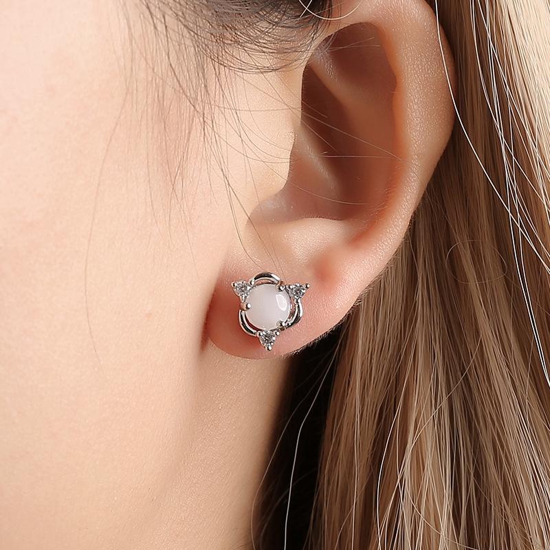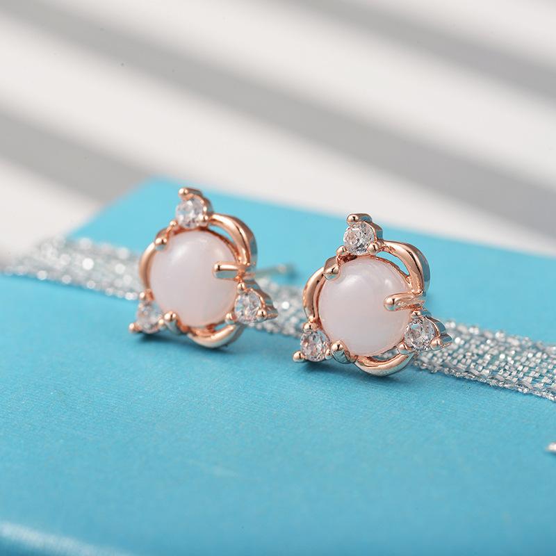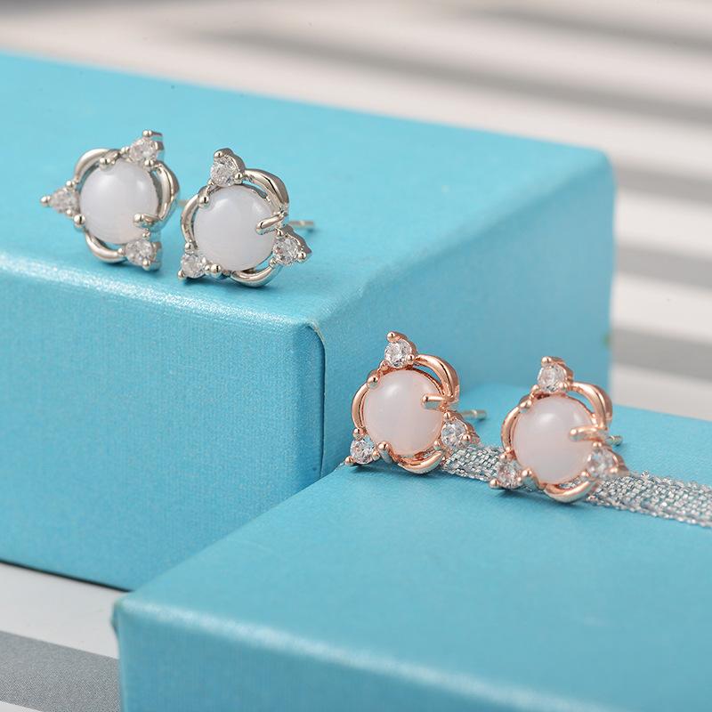 Earrings Fashionable Copper Inlaid Zircon Cute Earrings Women's Imitation White Jade Egg Face Stud Earrings Women's Birthday Gift