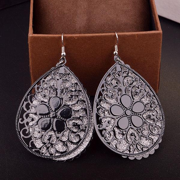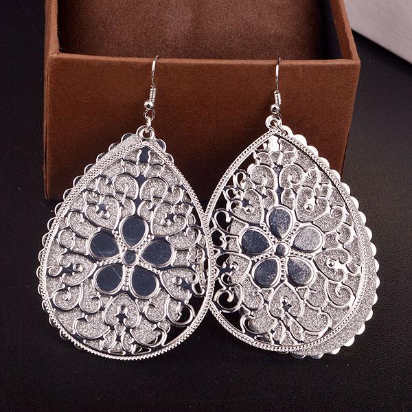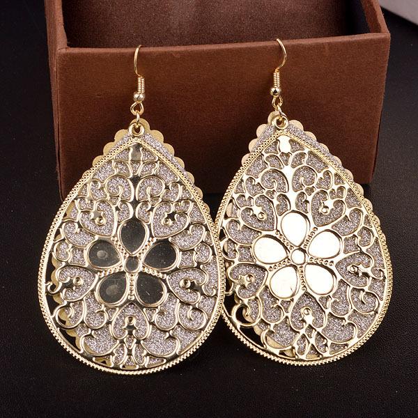 Exaggerated Retro Palace Hollow Flower Frosted Earrings High Quality Ladies Earrings Water Drop Swing Earrings