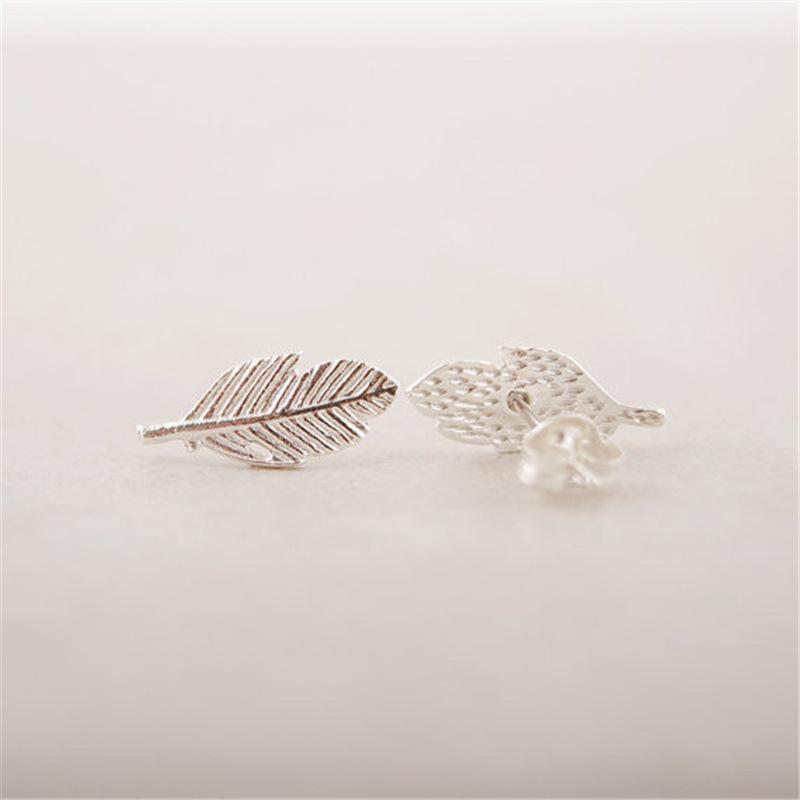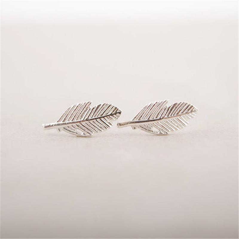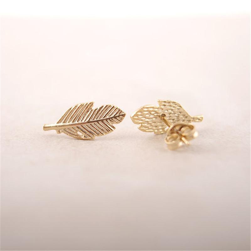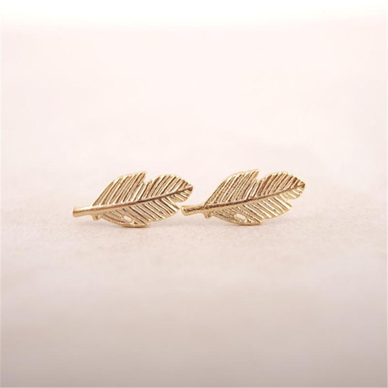 Explosive Fashion Feather Shape Leaf Stud Earrings Three Color Gold Silver Rose Gold