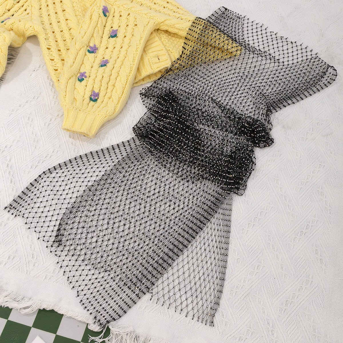 Explosive flash diamond fishnet bag hip skirt body chain sexy night inlaid rhinestone mesh round neck dress
