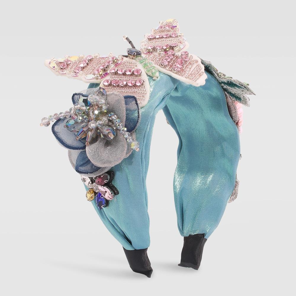F3174 Super Fairy Catwalk Hair Accessories Exaggerated Big Butterfly Sand Material Headband Fashion Rice Beads Diamond Sequins Headband