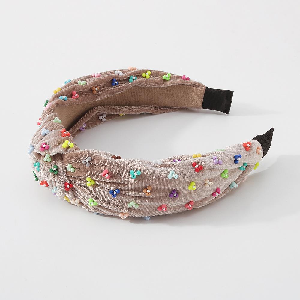 F368 Fashion Headband Corduroy Knotted Fabric Headband Personalized Colorful Rice Beads Light Luxury Headwear