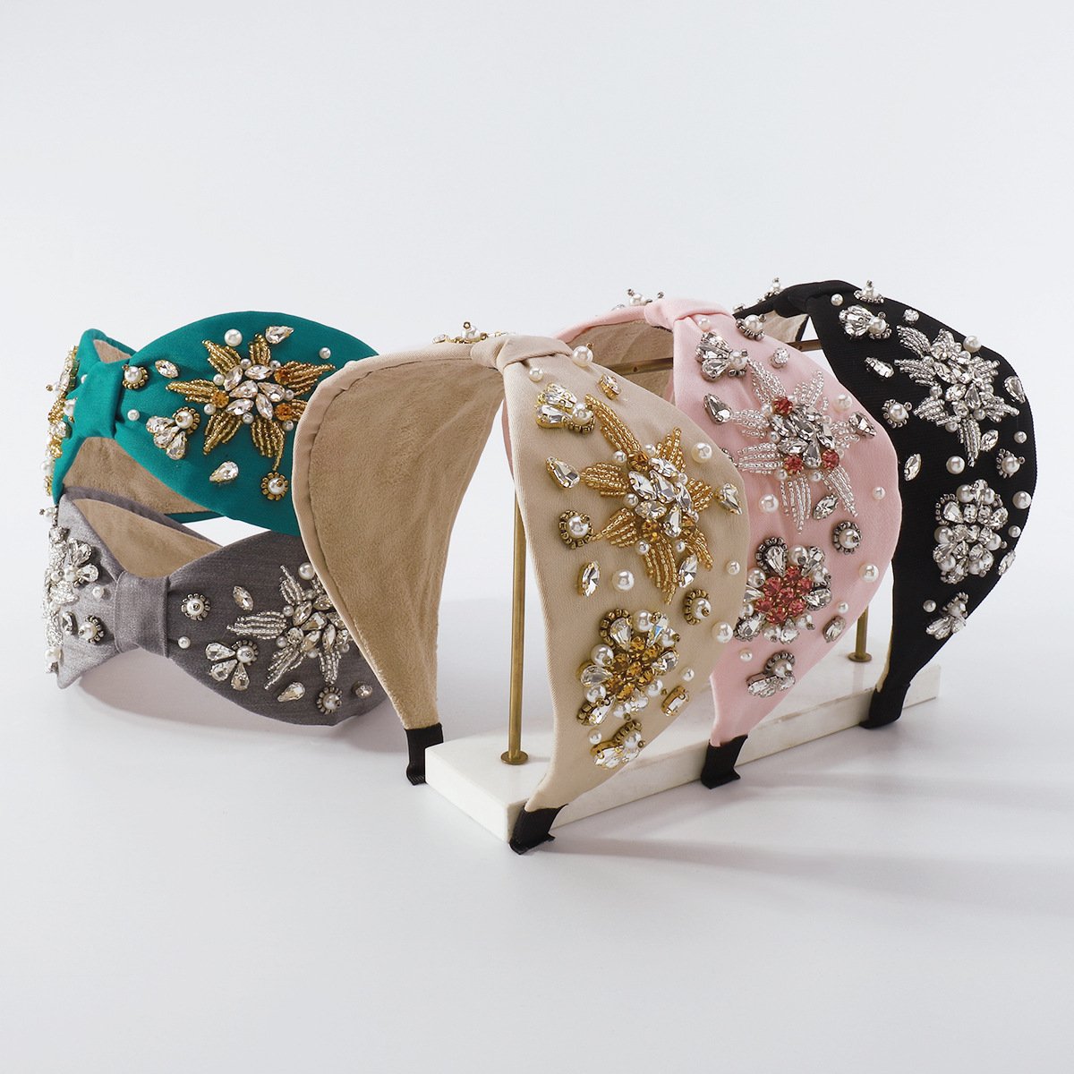 F4228 Baroque retro wide-brimmed headband female pearl rhinestone exaggerated palace party dinner headband
