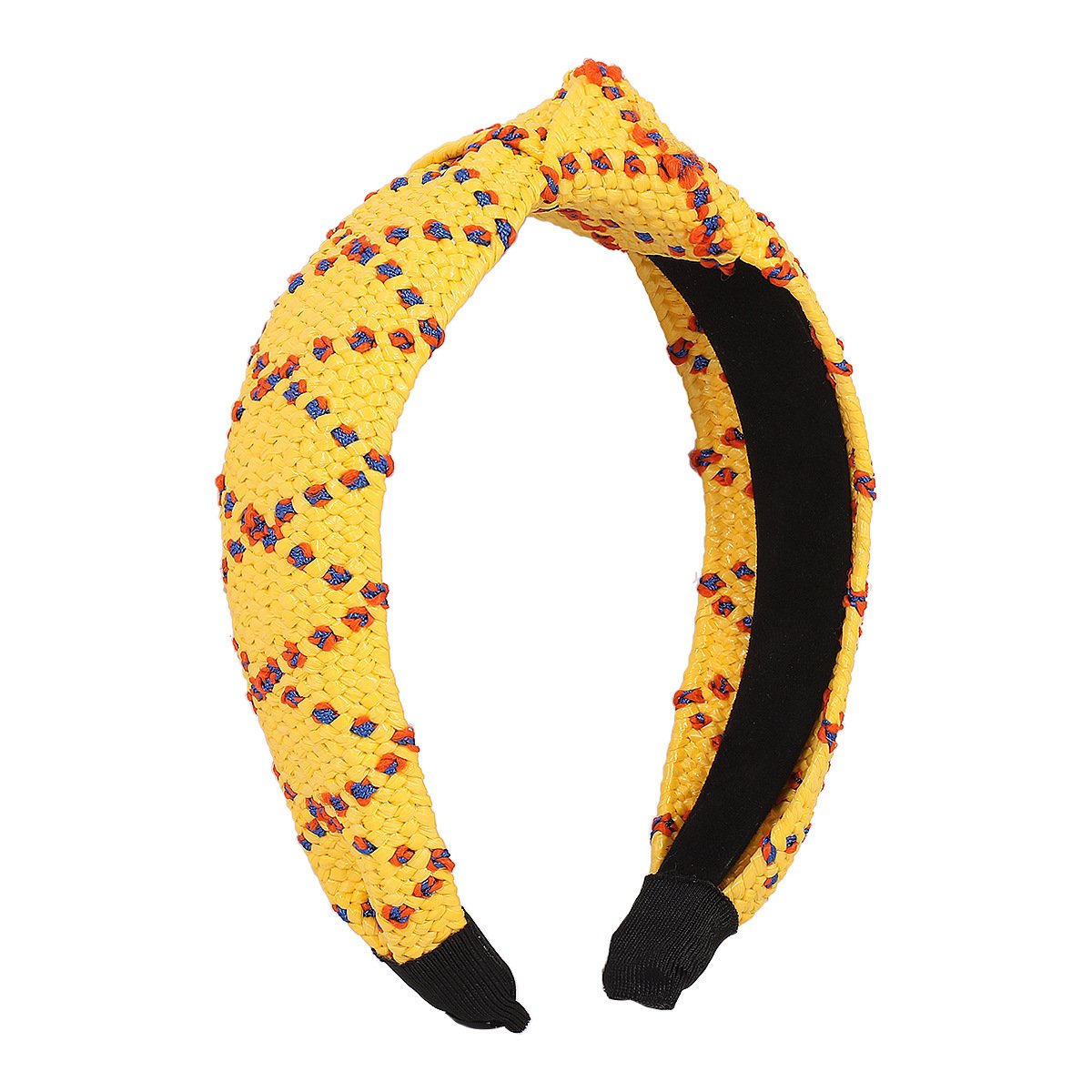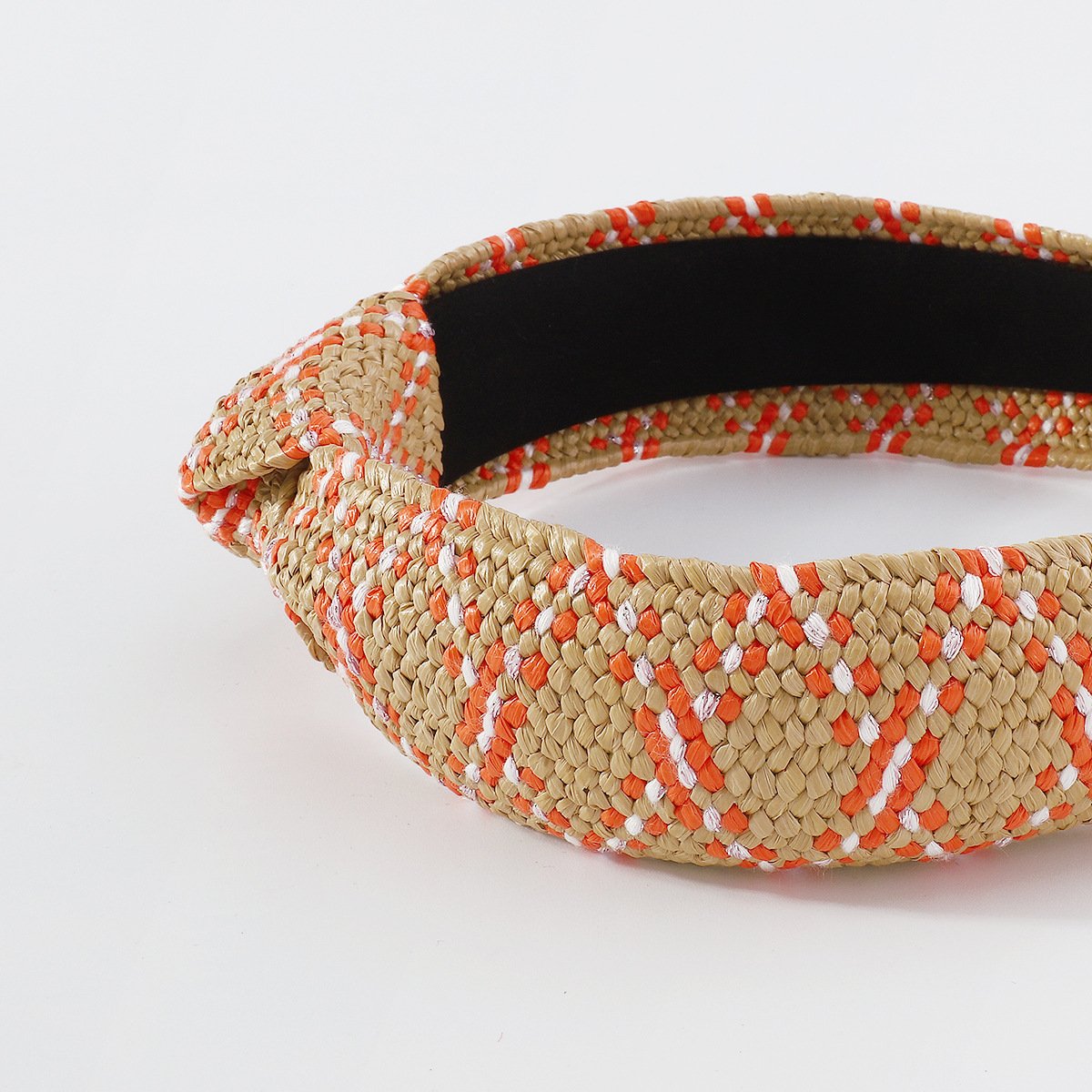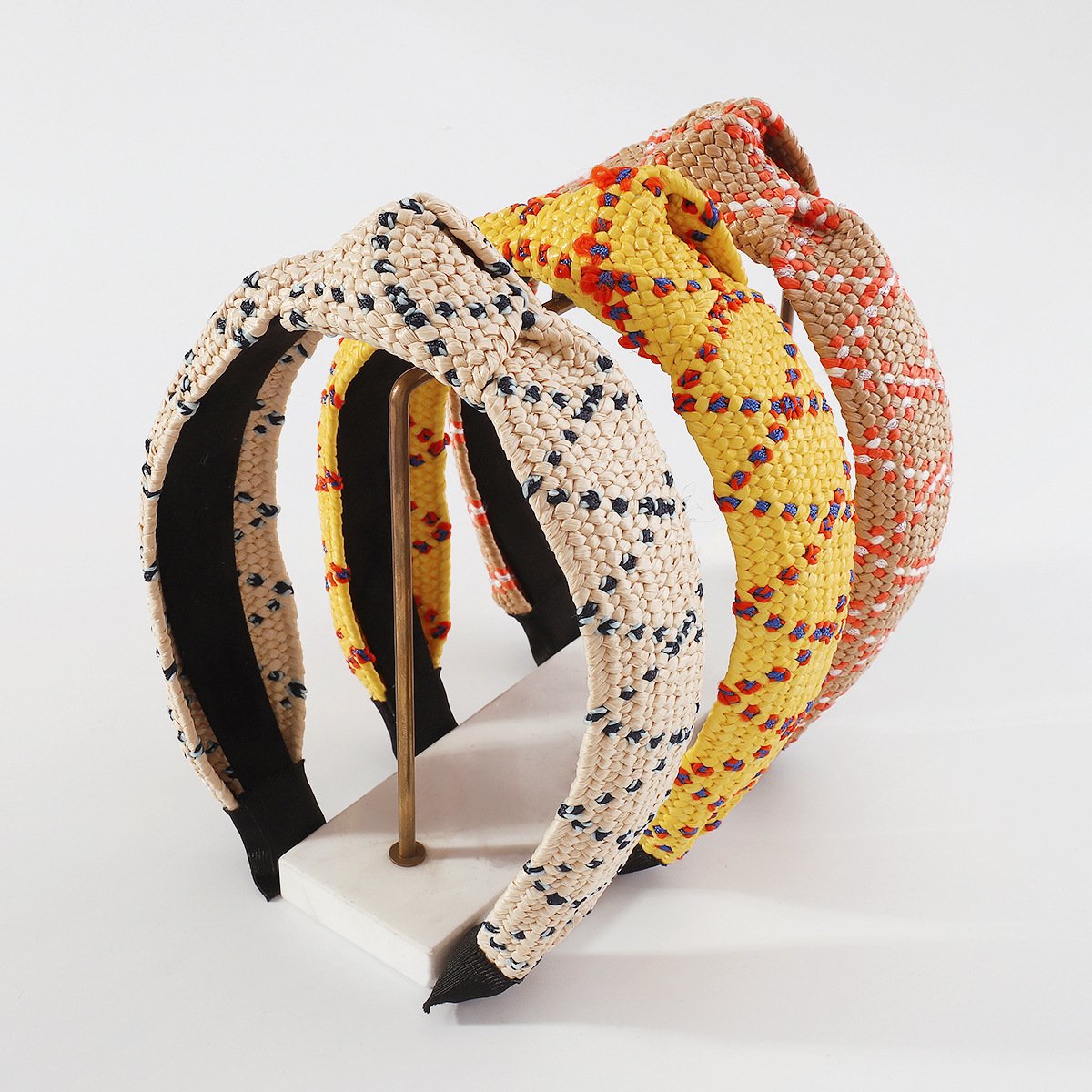 F439 Geometric headband women's raffia woven contrast color knotted headband irregular printing hair accessories
