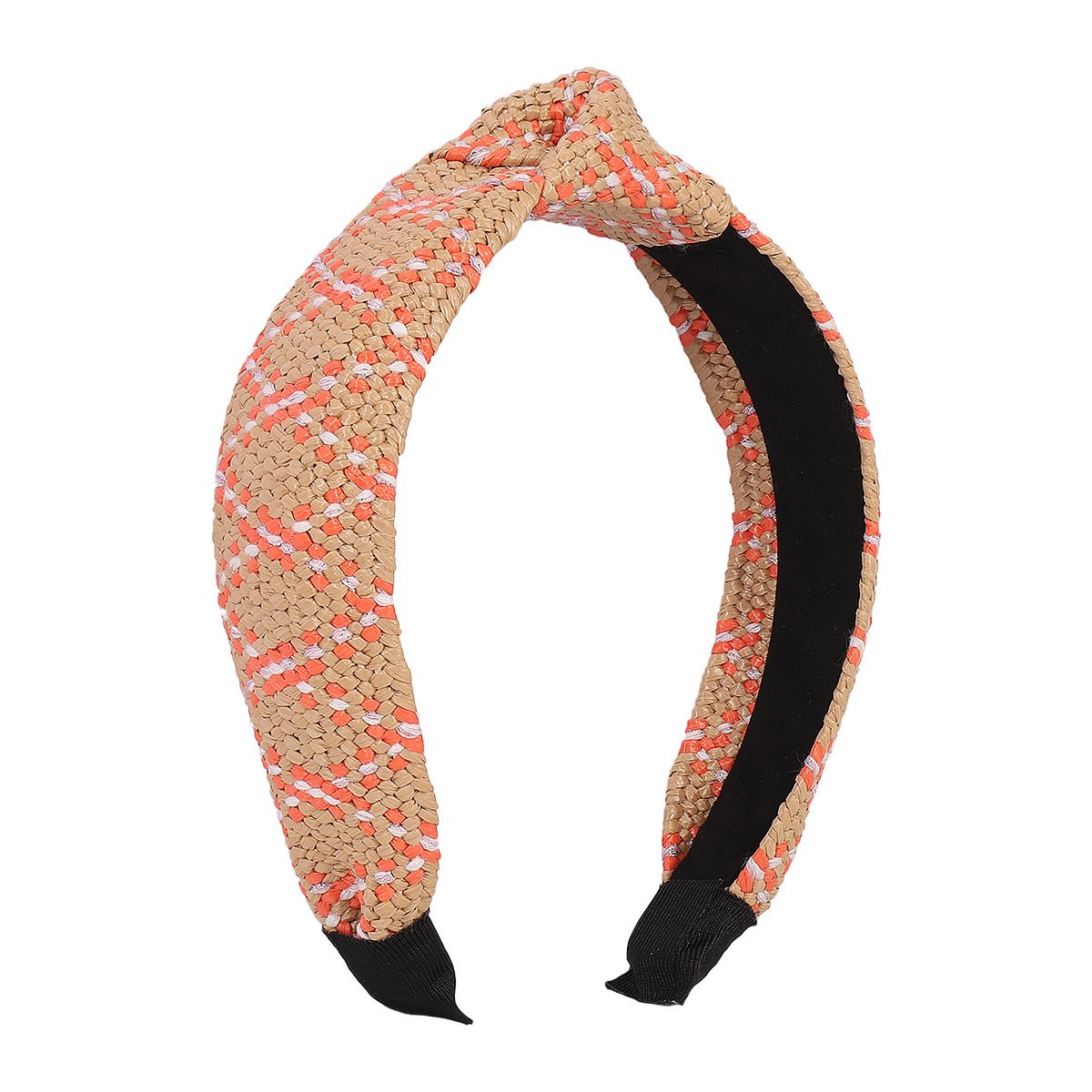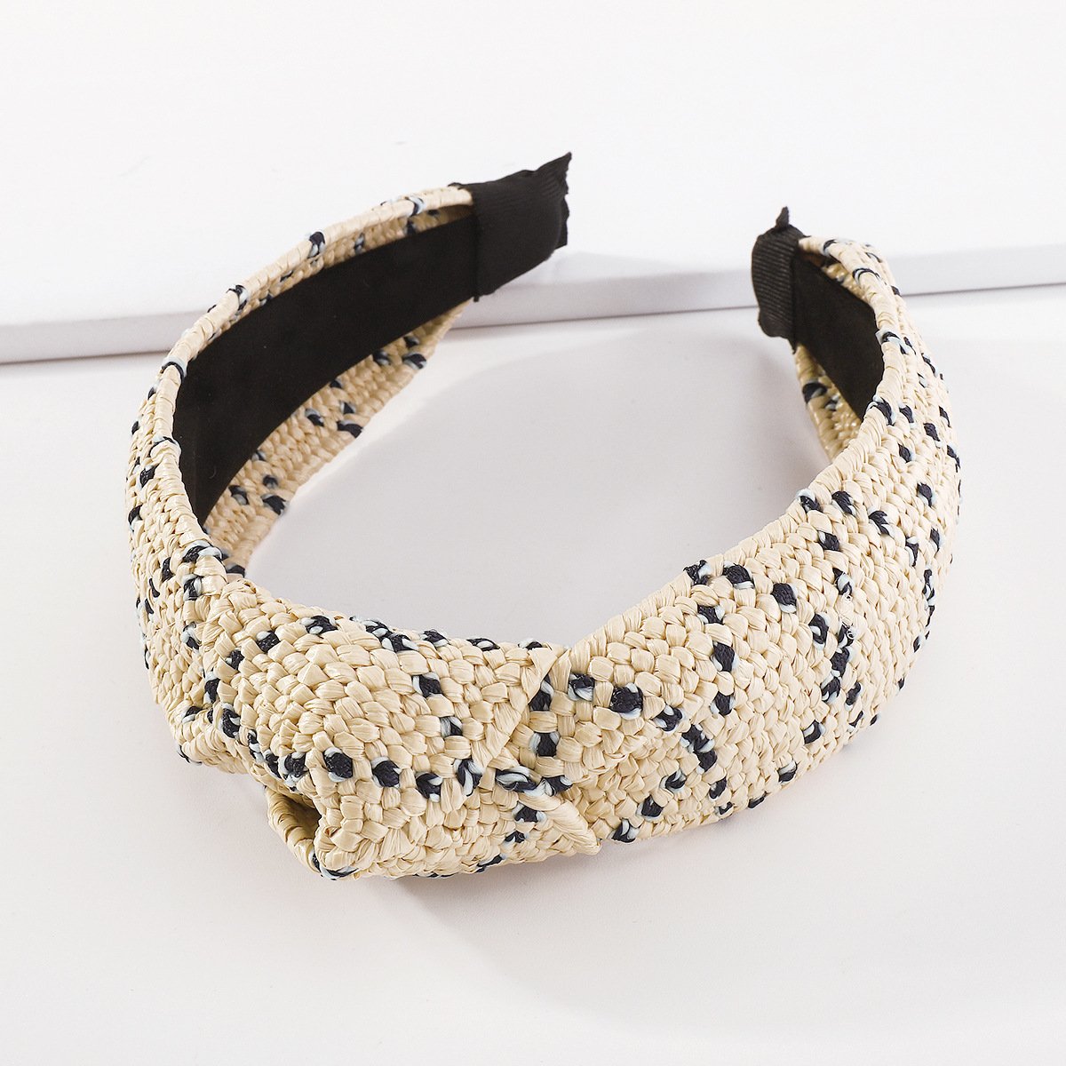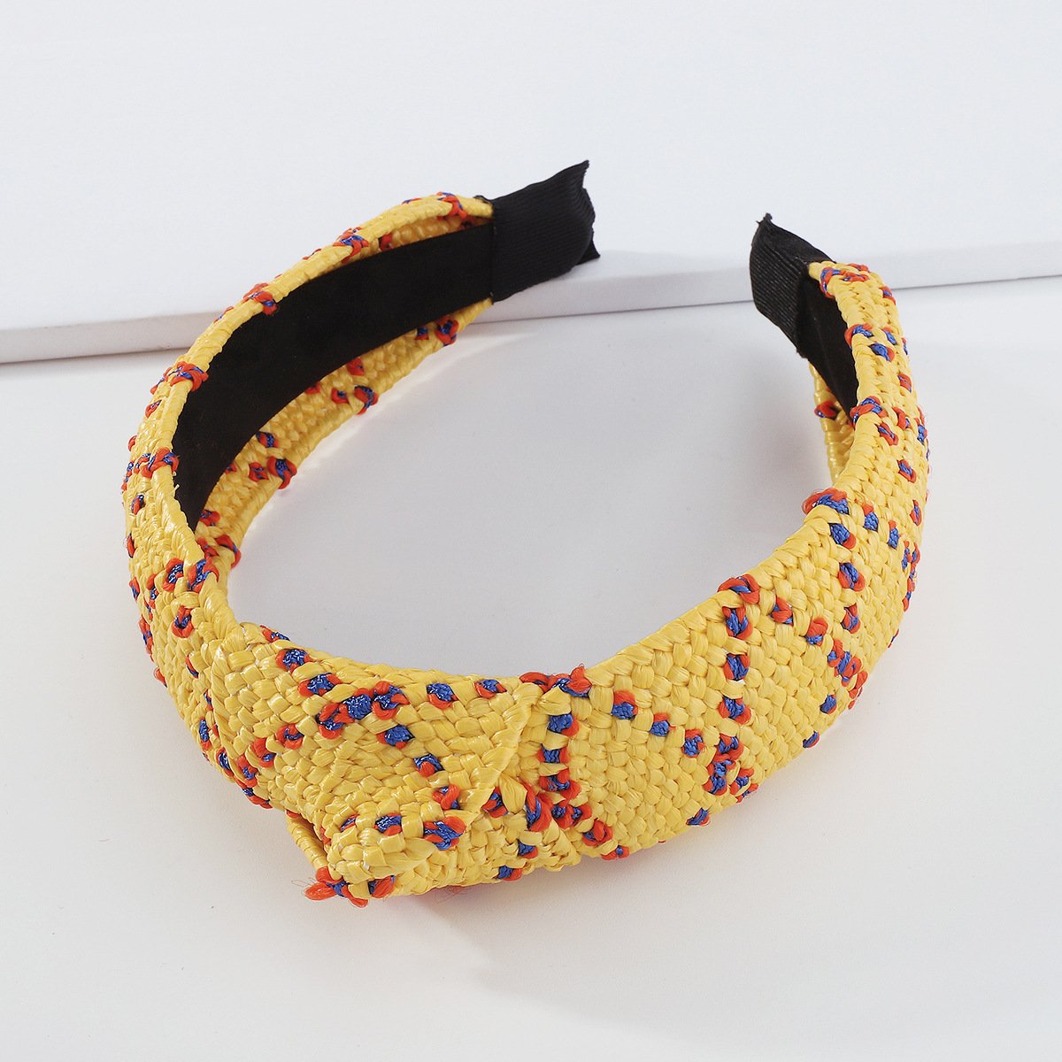 F439 Geometric headband women's raffia woven contrast color knotted headband irregular printing hair accessories