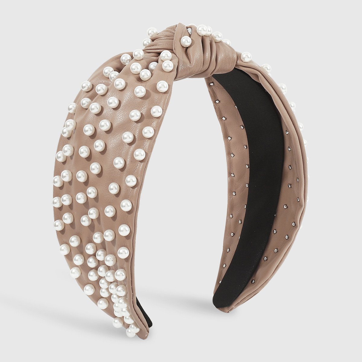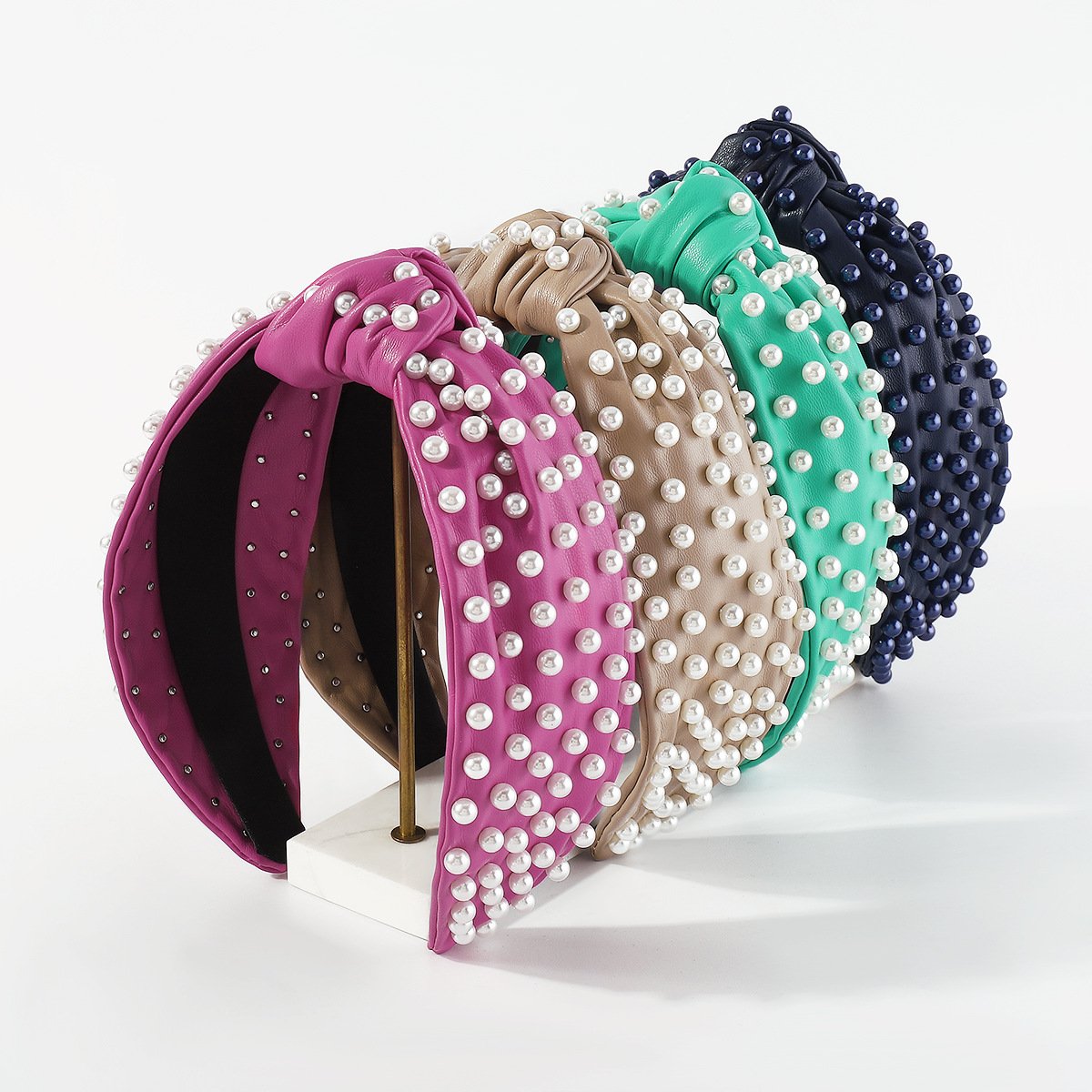 F4833 creative personality leather pearl headband knotted solid color style retro going out pressing hair adult headband