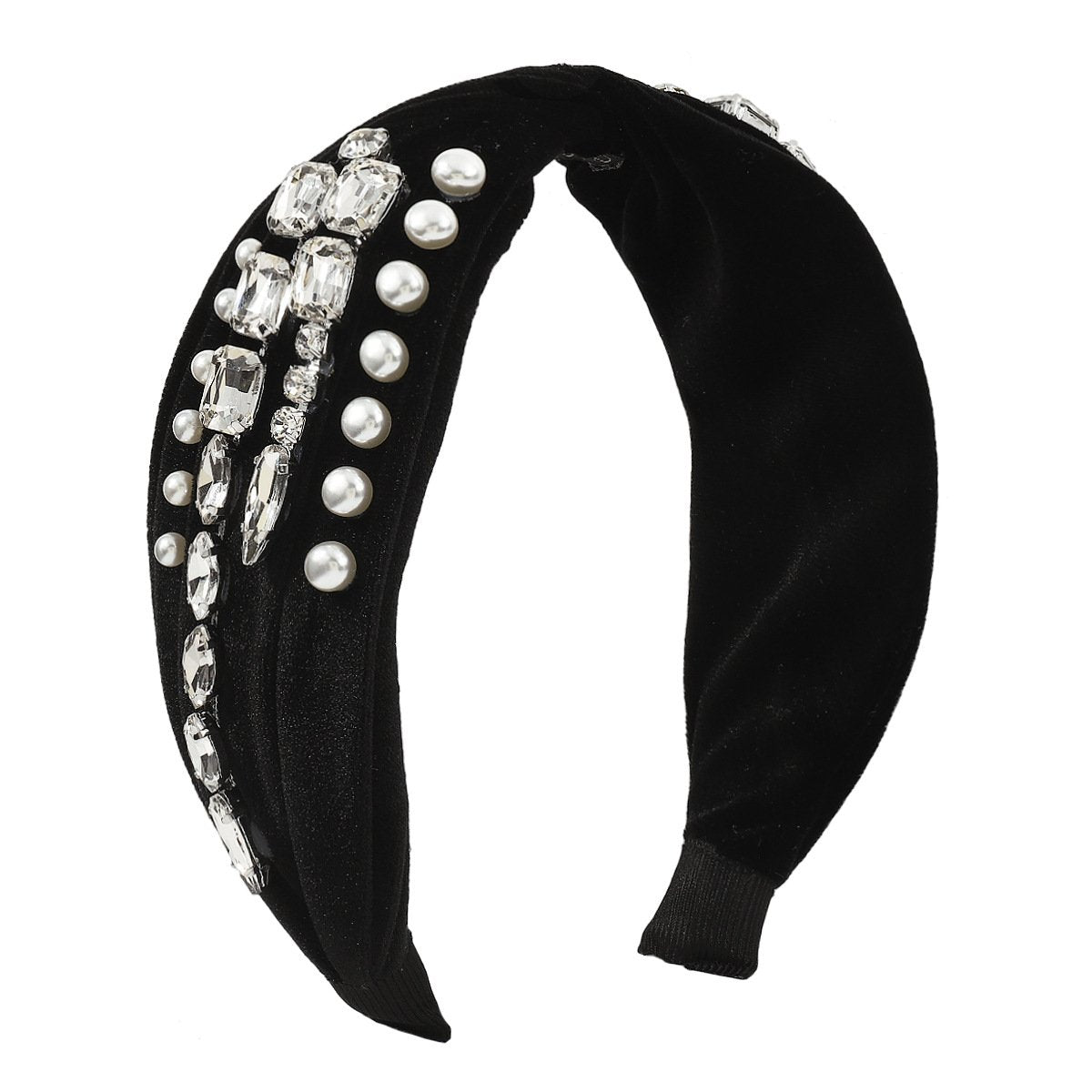 F4892 autumn and winter hair accessories corduroy rhinestone imitation pearl headband light luxury temperament knotted headband female