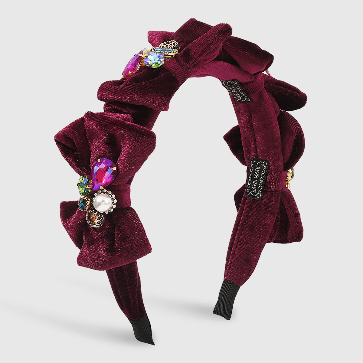 F4897 personalized bowknot pearl headband velvet light luxury rhinestone temperament sweet retro elegant headband