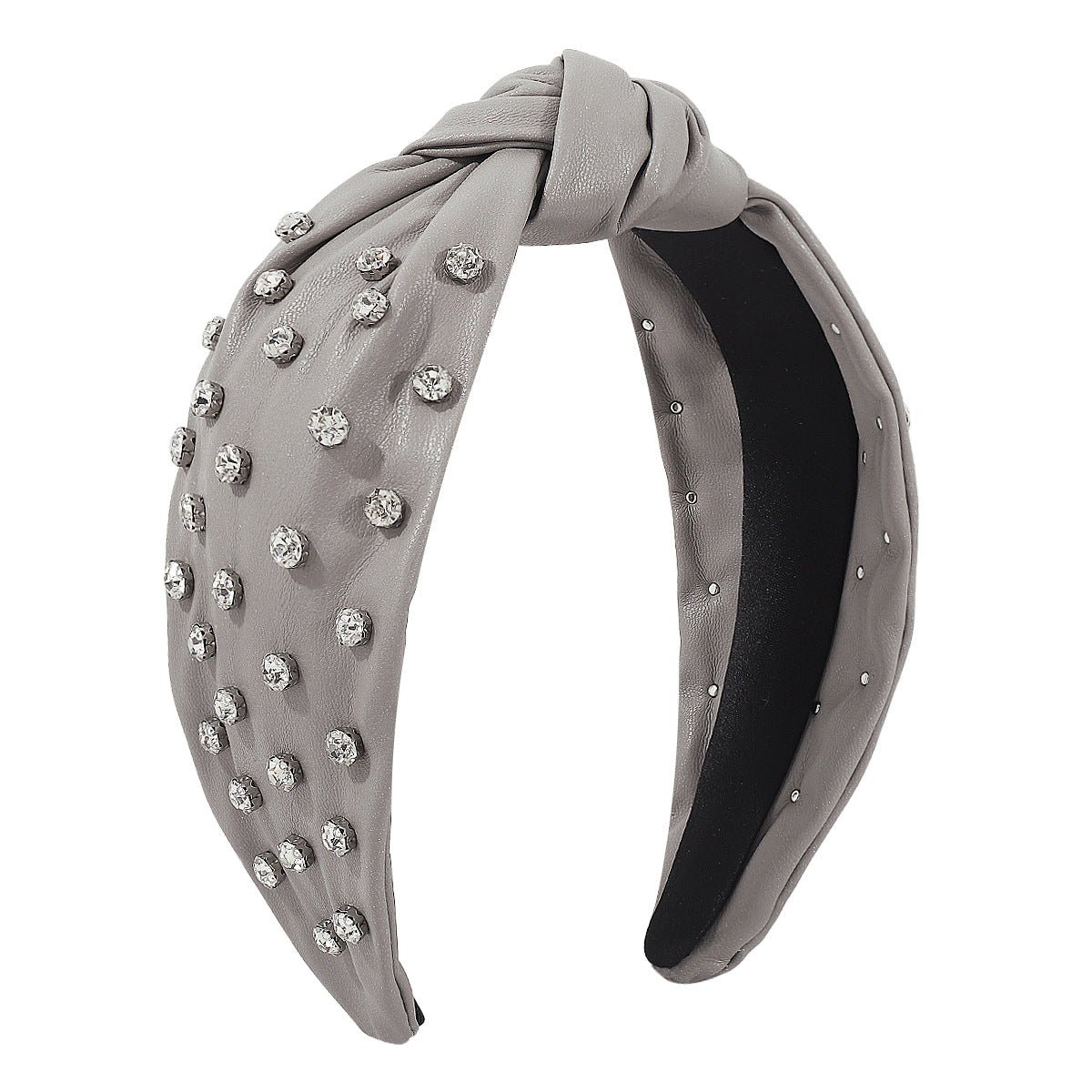 F5116 Exaggerated Heavy Industry Leather Rhinestone Headband Creative Personality Pure Color Knotted Fashion Light Luxury Headband
