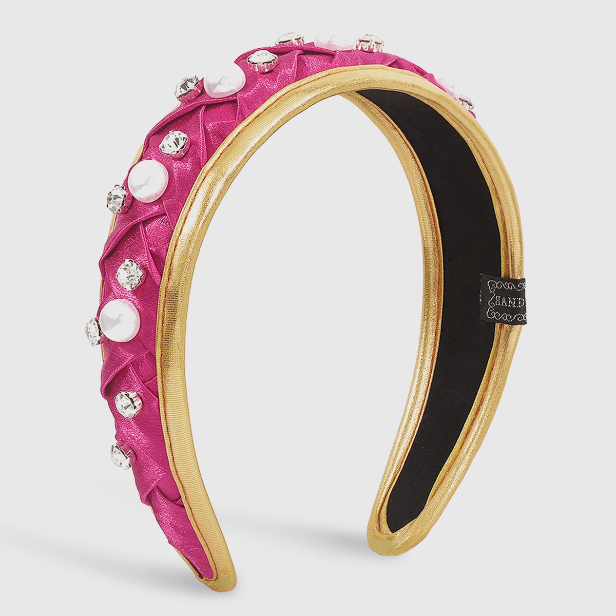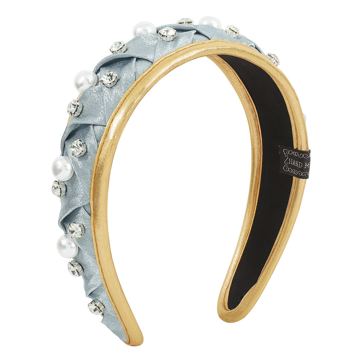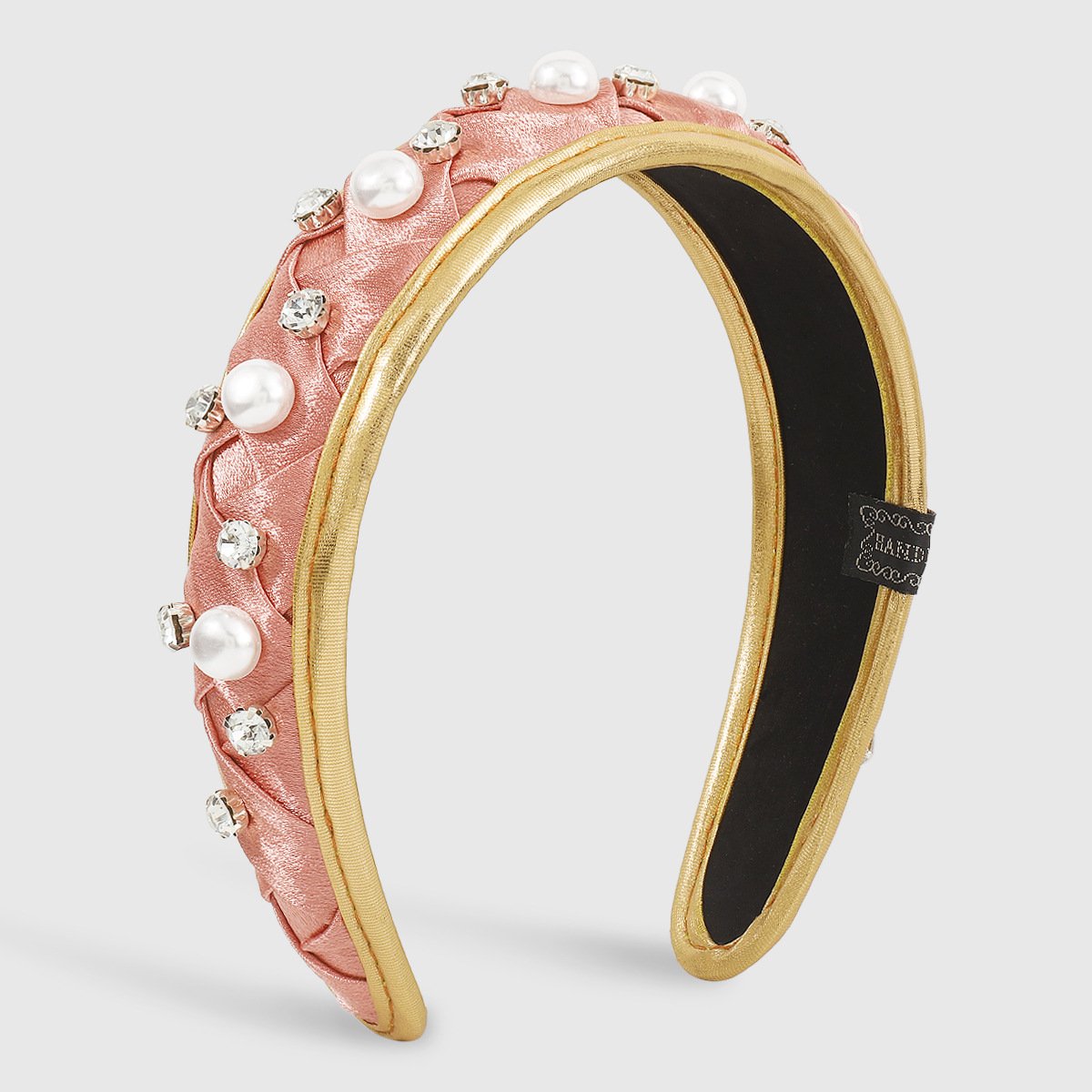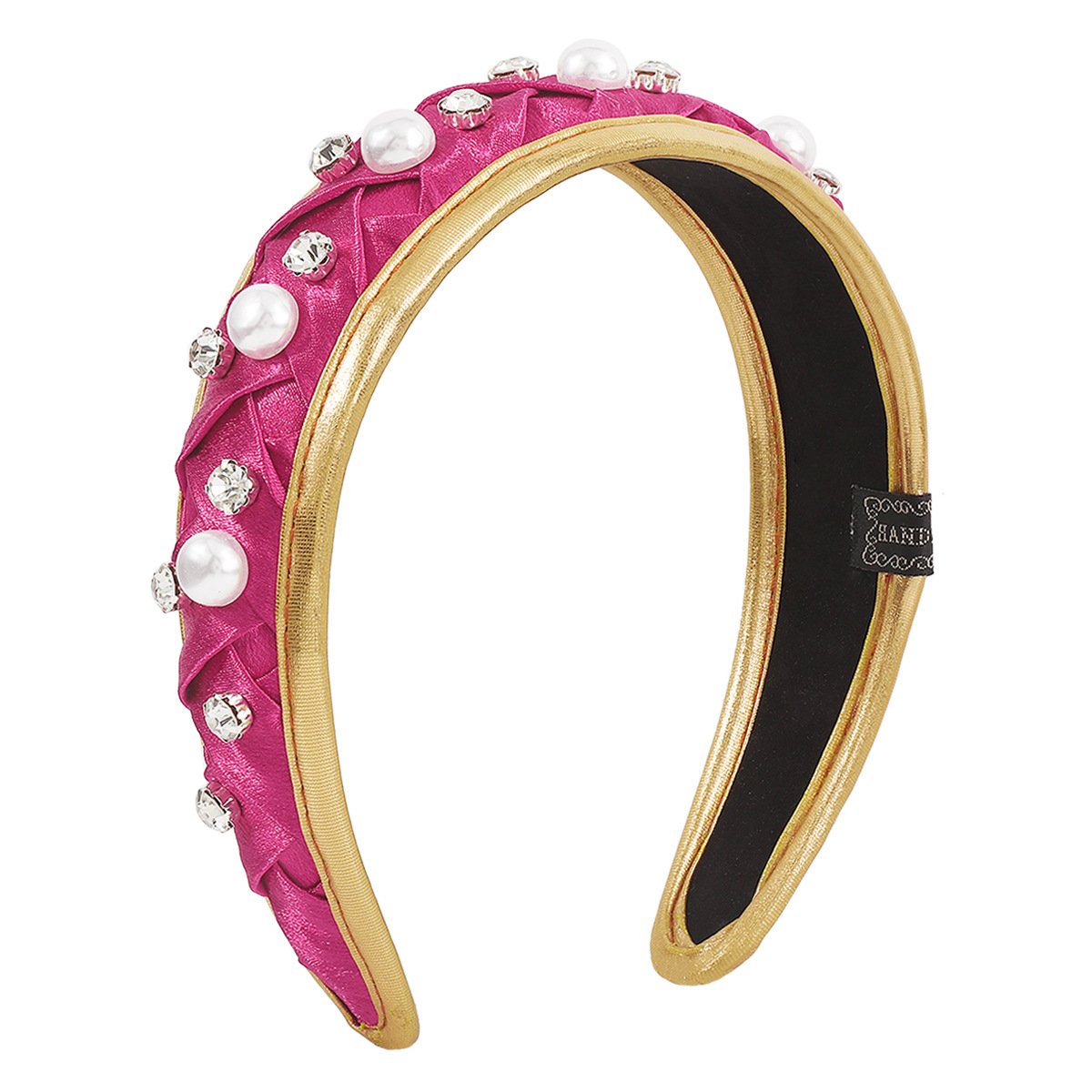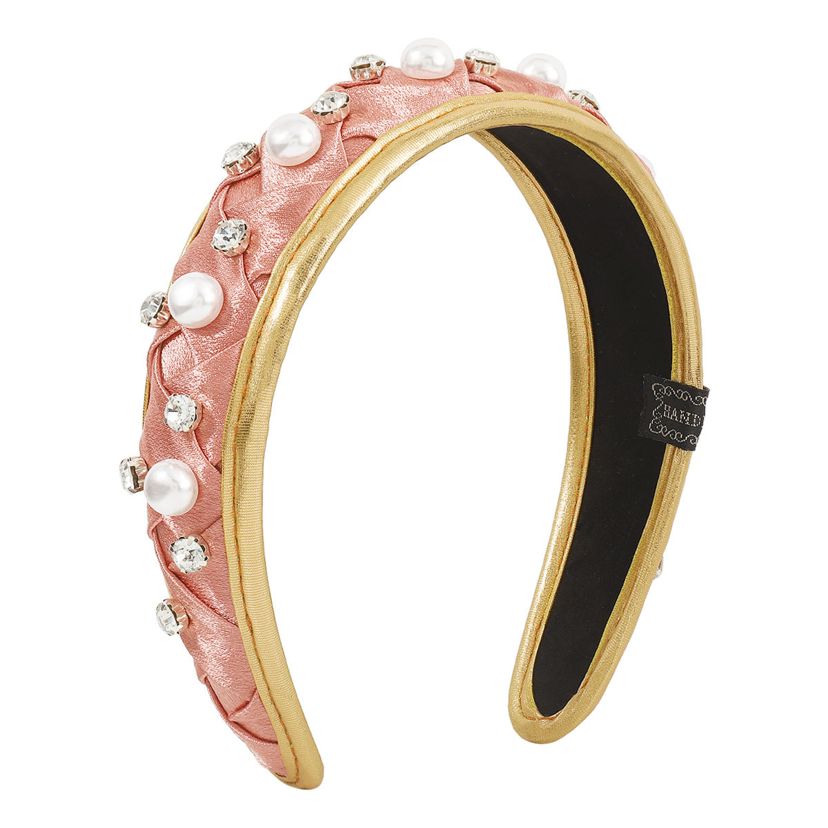F525 Baroque Retro Wrap Geometric Headband Fabric Woven Pearl Rhinestone Light Luxury Palace Headband