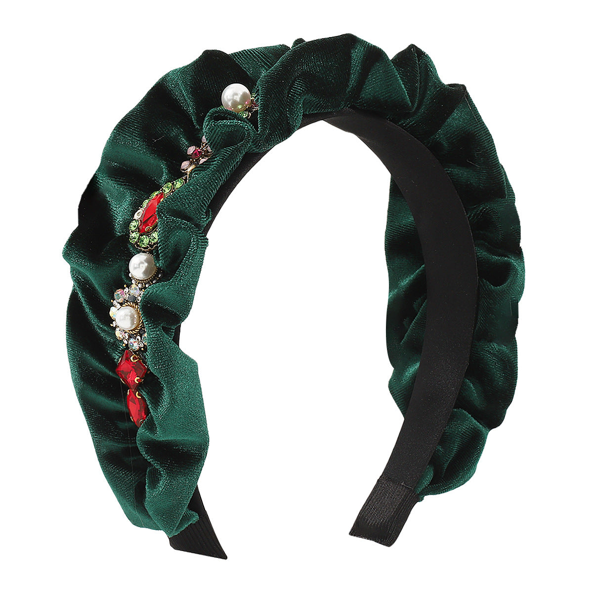 F528 retro velvet folds pearl rhinestone headband French court exaggerated geometric light luxury headband