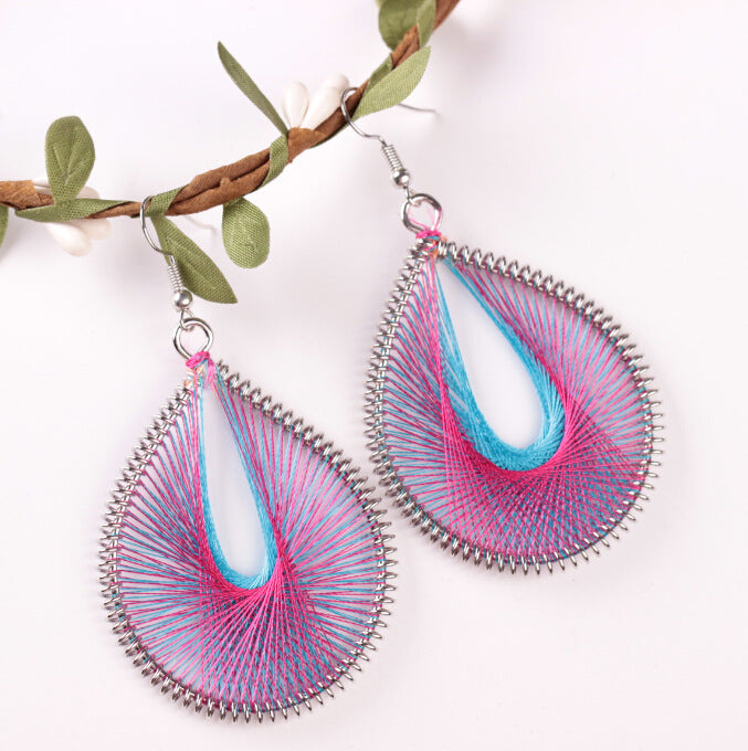 Fashion and popular silk thread earrings handmade oval exaggerated earrings jewelry