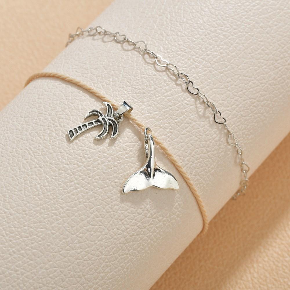 Fashion and simple alloy coconut tree fishtail foot decoration beach multi-layer anklet for women