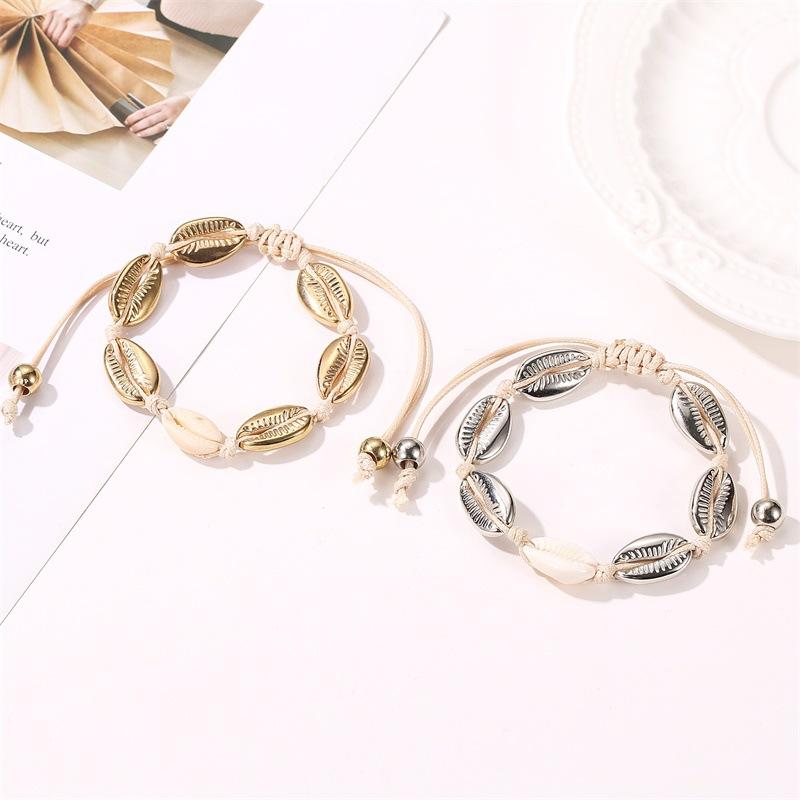 Fashion Braided Bracelet Adjustable Seashell Metal Knotted Bracelet Women Ocean Bracelet