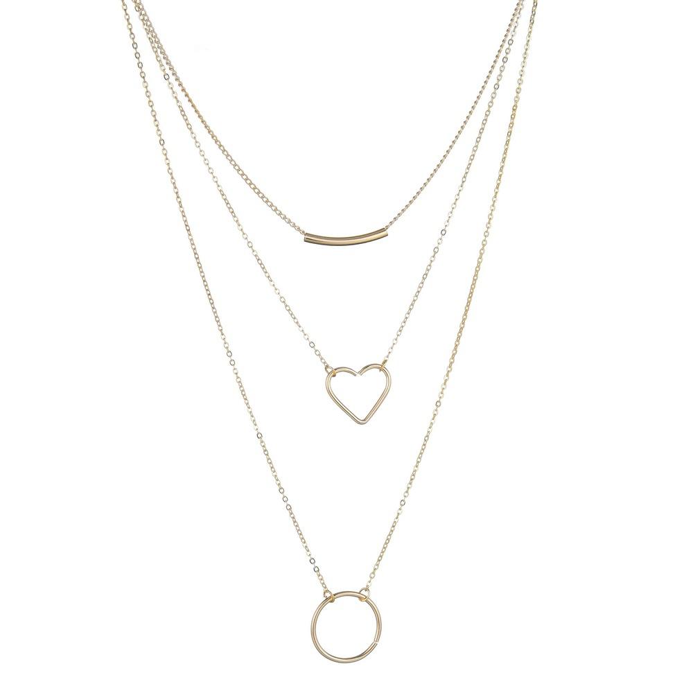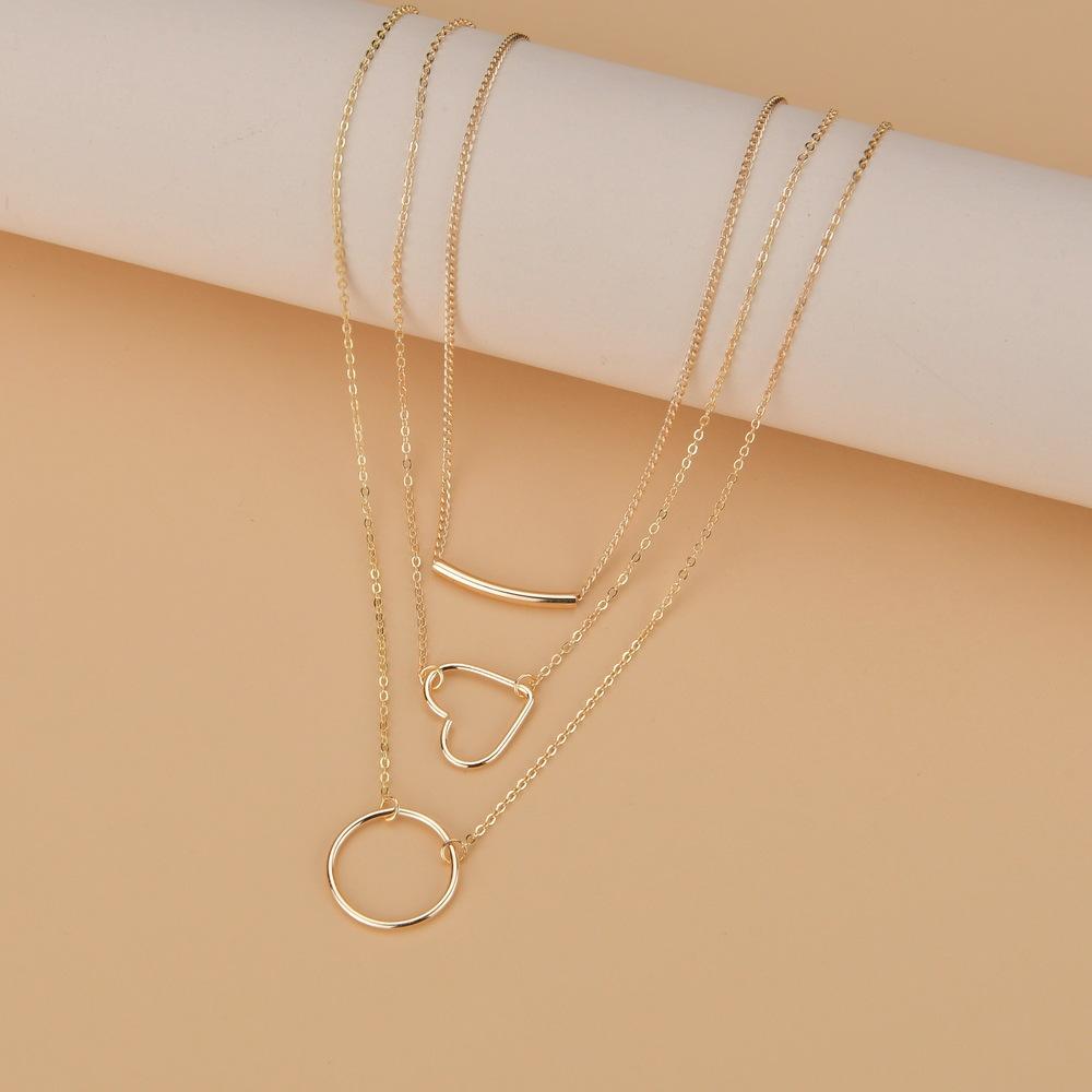 Fashion Iron Circle Peach Heart Pendant Necklace Simple Multilayer Necklace Ladies Accessories