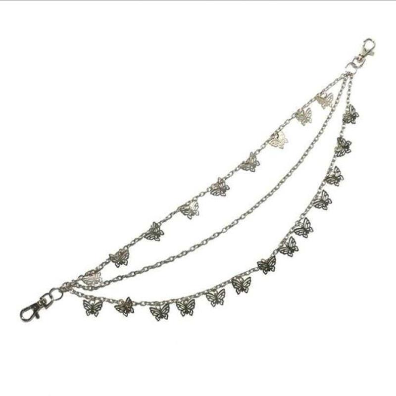 Fashion metal hollow butterfly thick waist chain pants chain key chain trend men and women jumping di pants chain INS chain accessories
