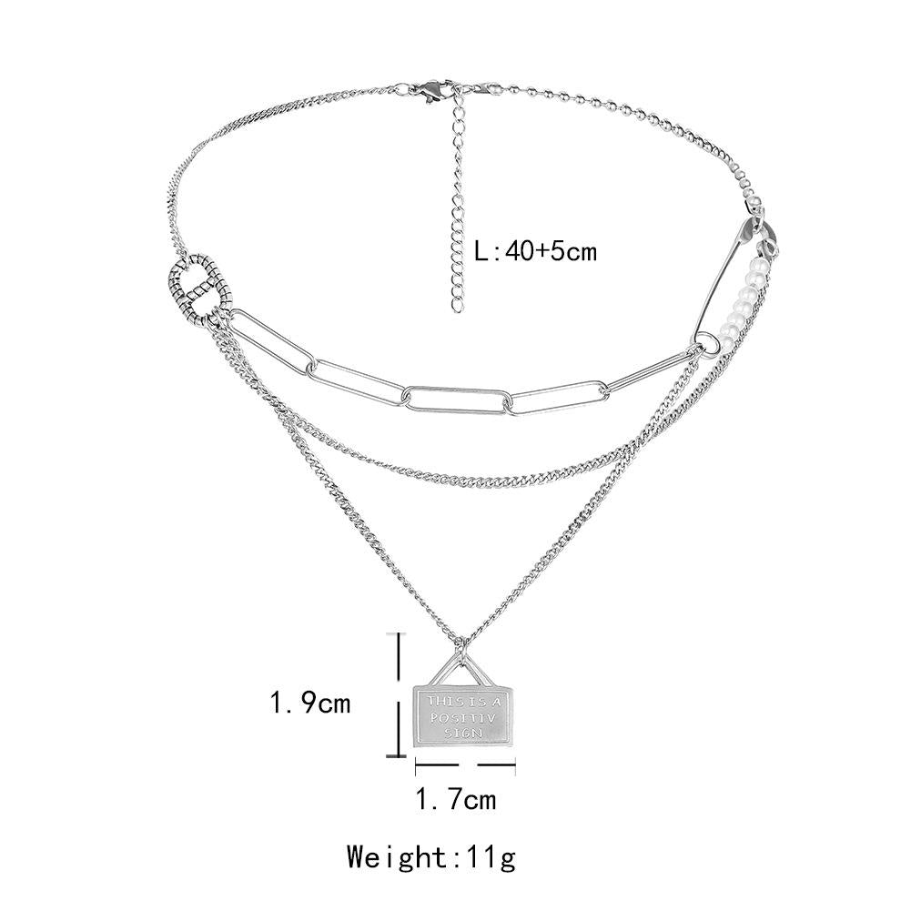 Fashion simple personality stainless steel multi-layer brooch pearl envelope pendant lettering clavicle chain titanium steel necklace