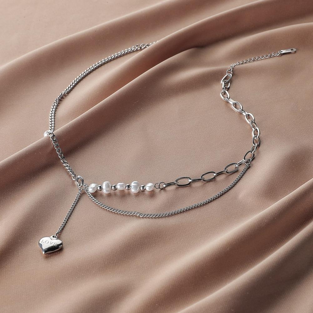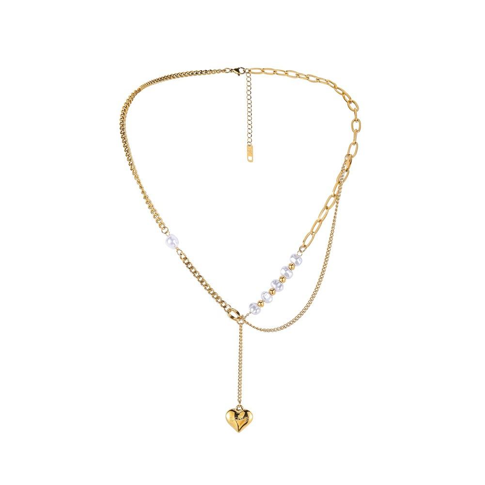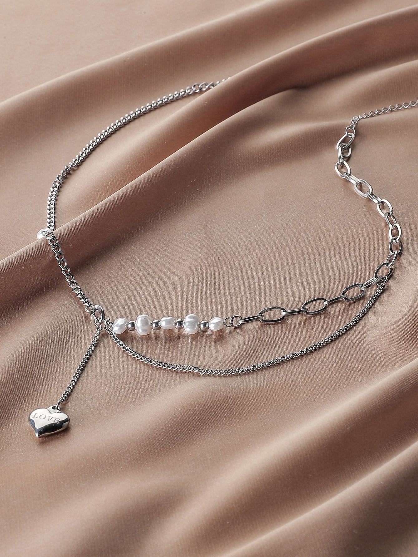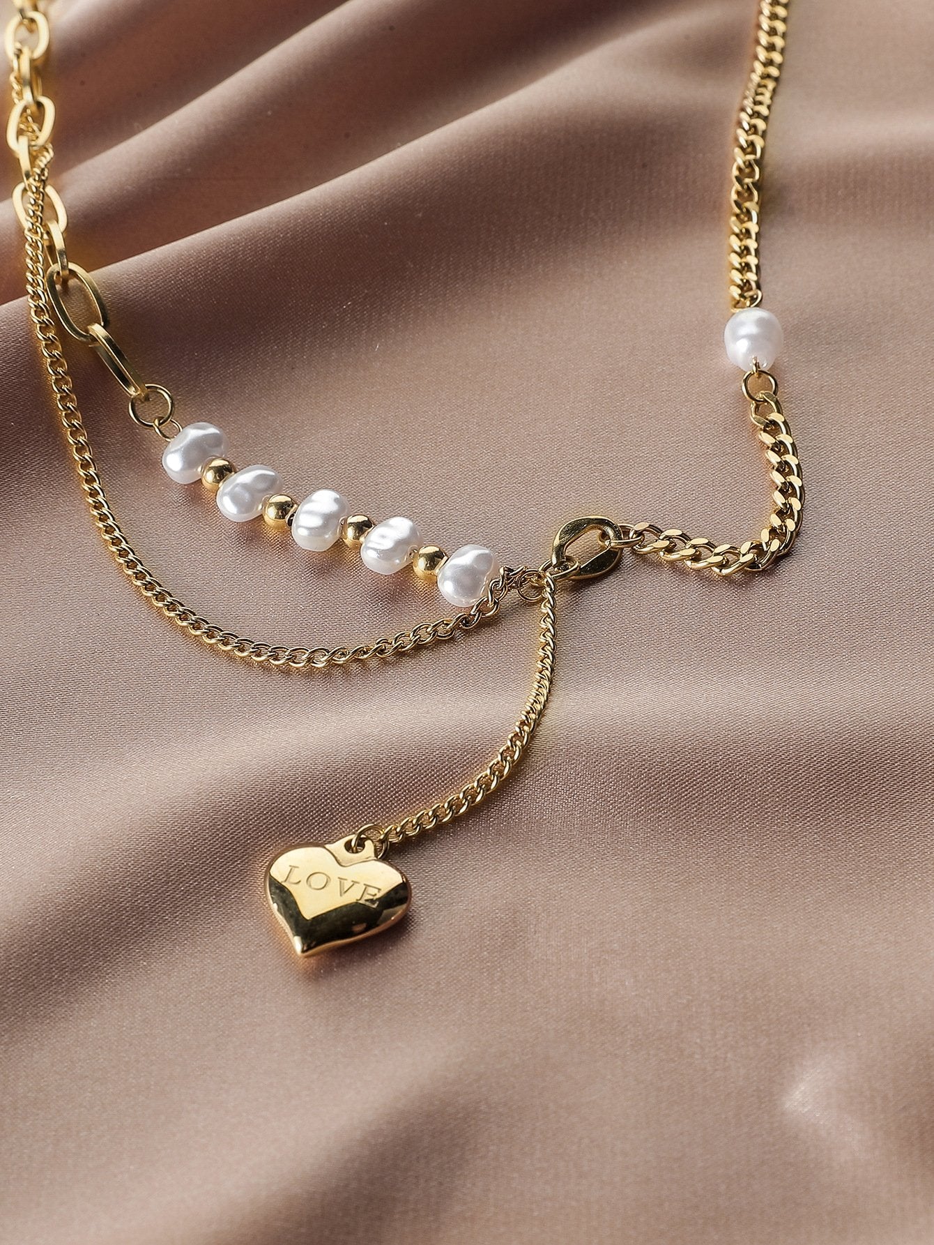 Fashion special-shaped pearl clavicle chain ins stainless steel love love pendant trend necklace