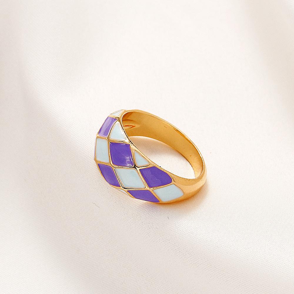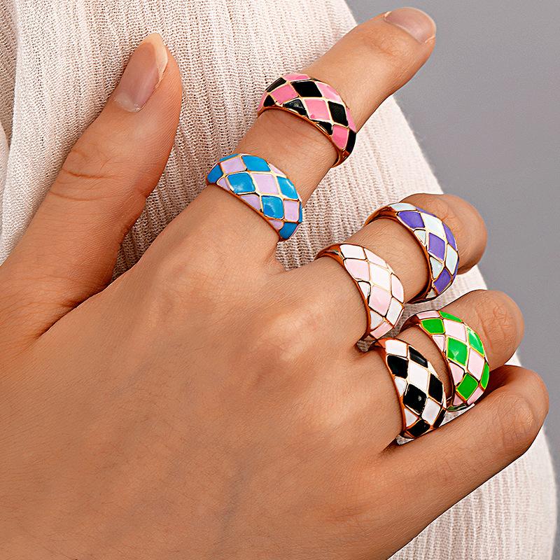 Fashion square ring ins drop oil color diamond ring net red checkerboard tail ring female