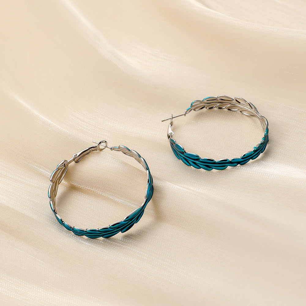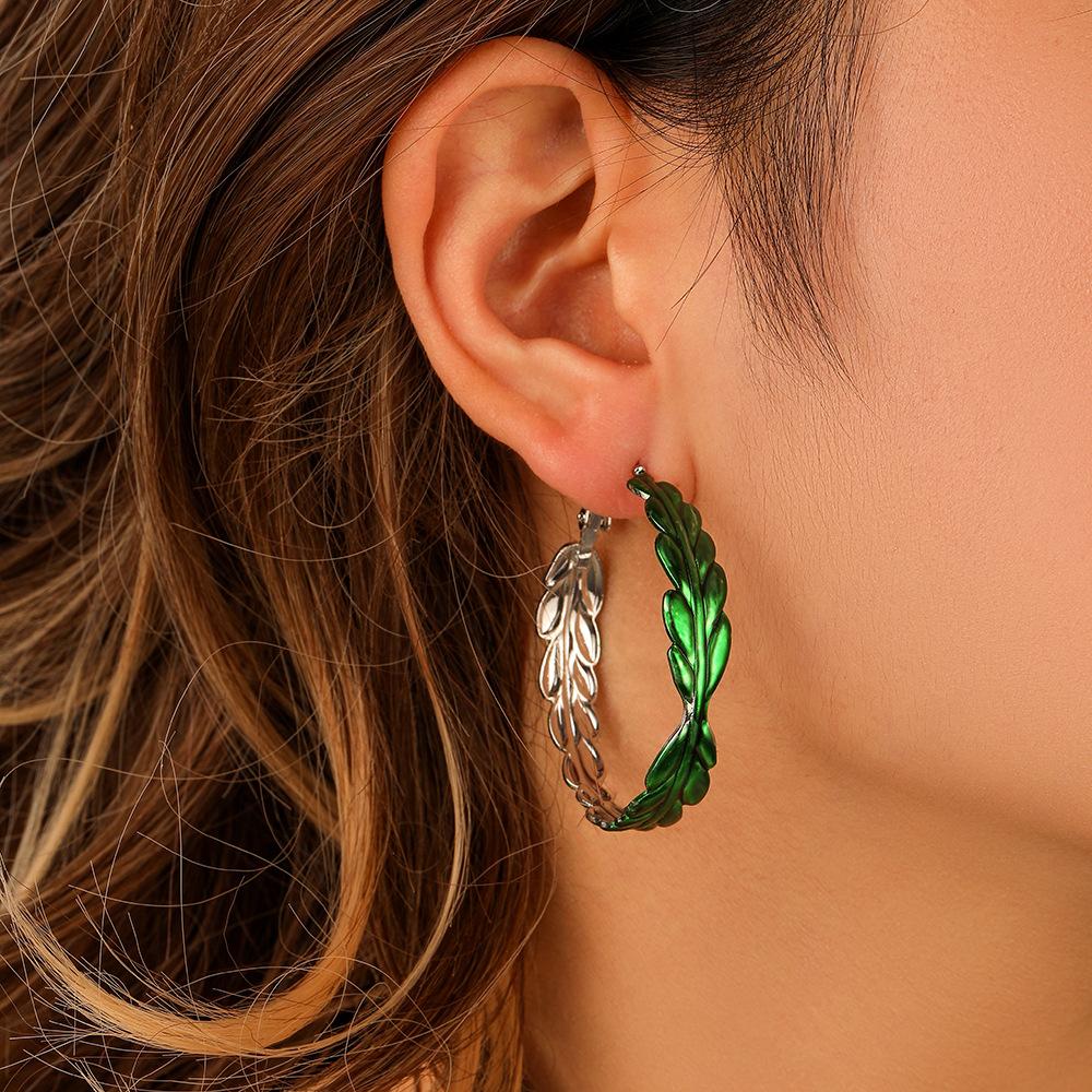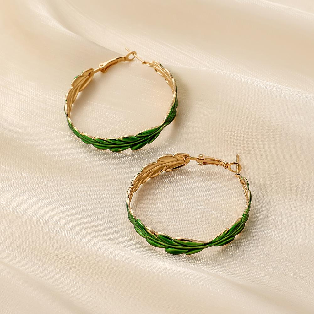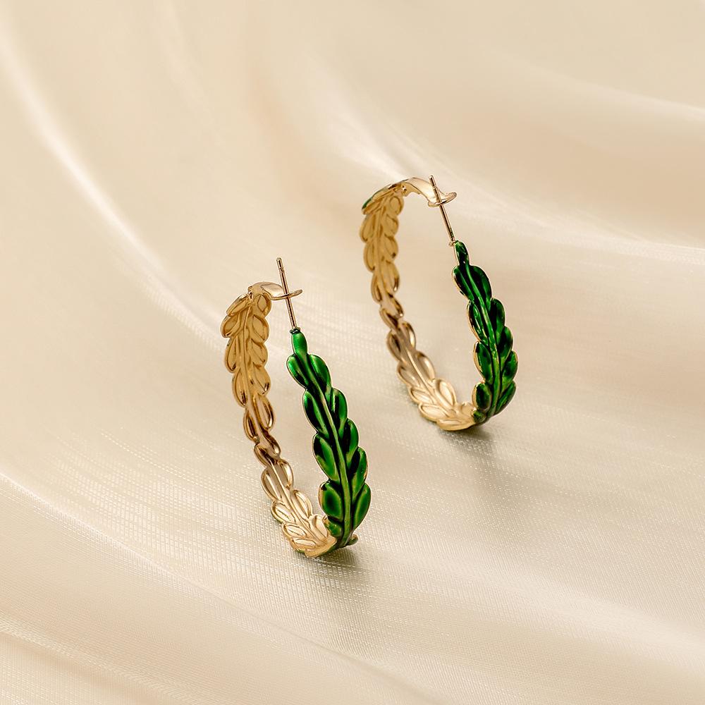 Fashionable high-end niche design simple personality environmental protection color painting oil green leaves wheat ears earrings earrings