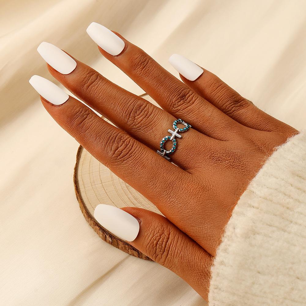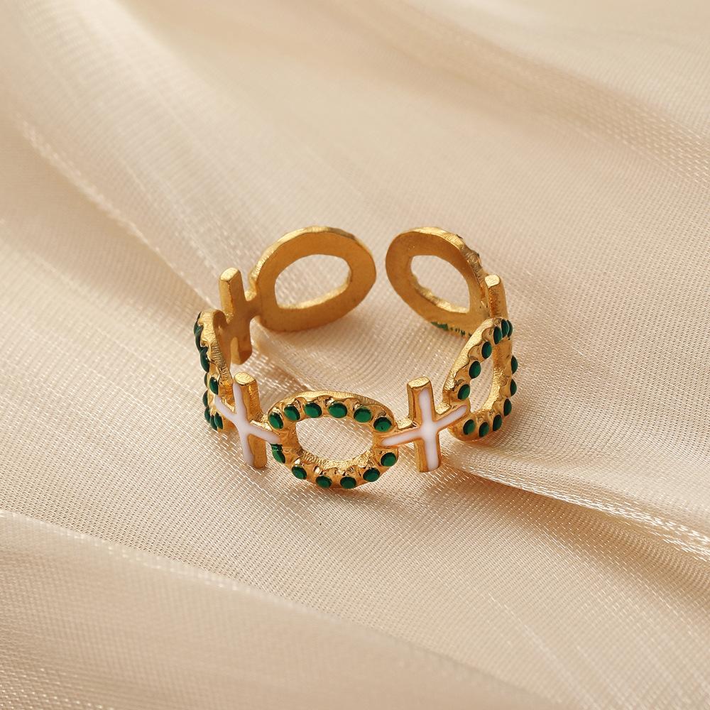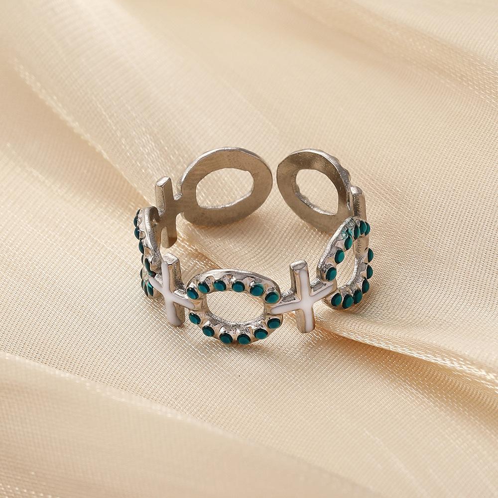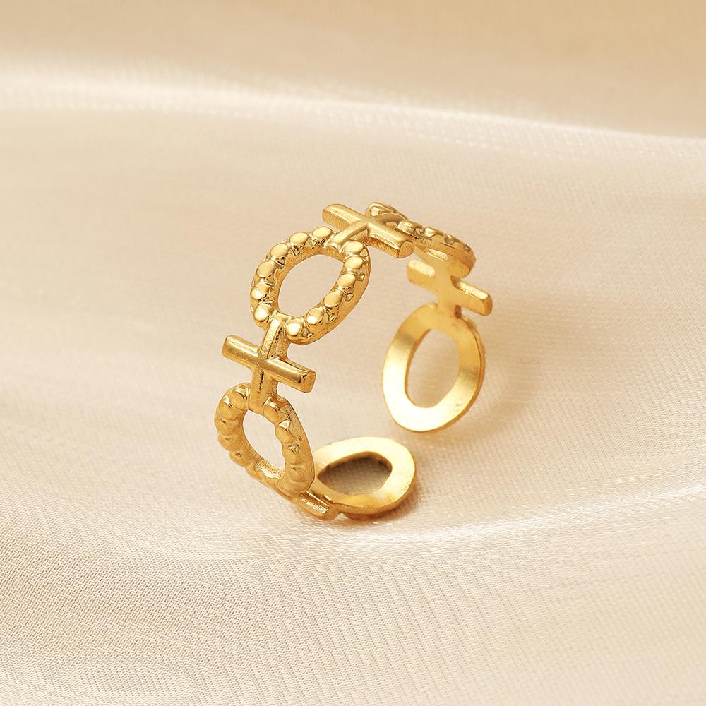 Geometric Line Stitching Versatile Fashion Stainless Steel Opening Adjustable O Cross Ring Female