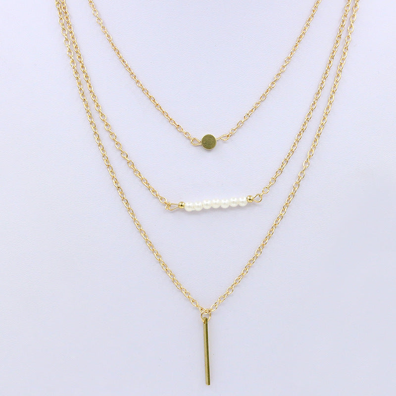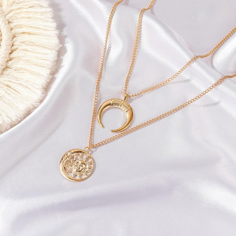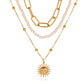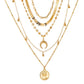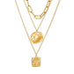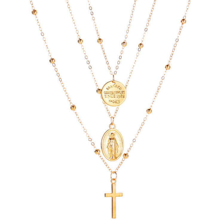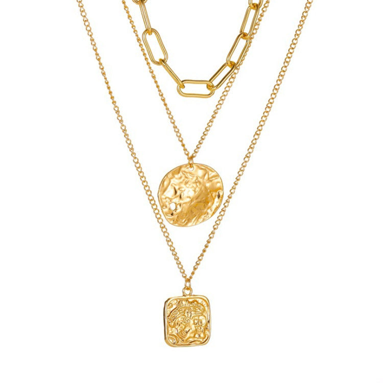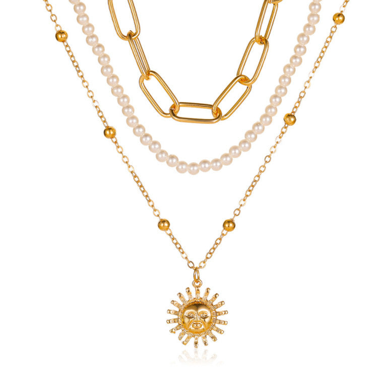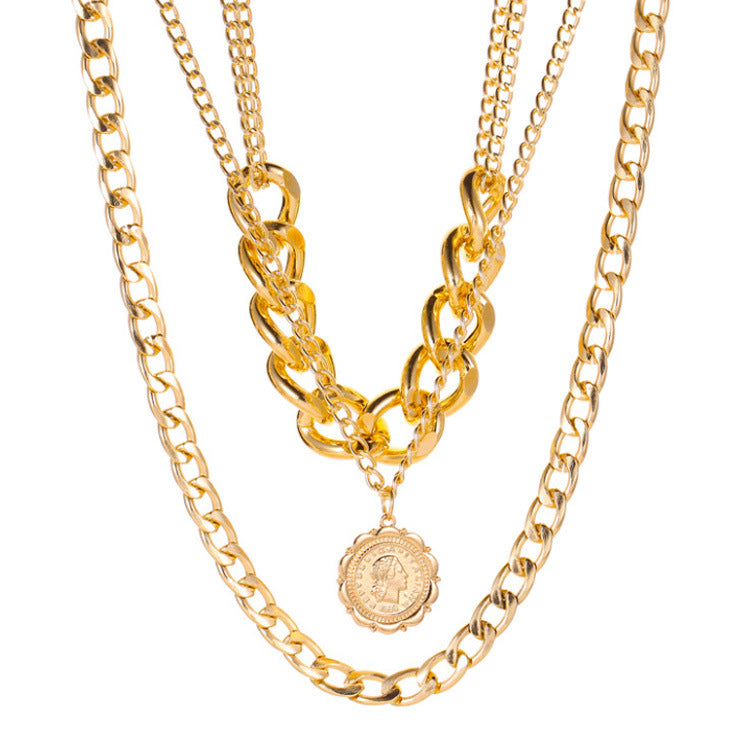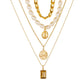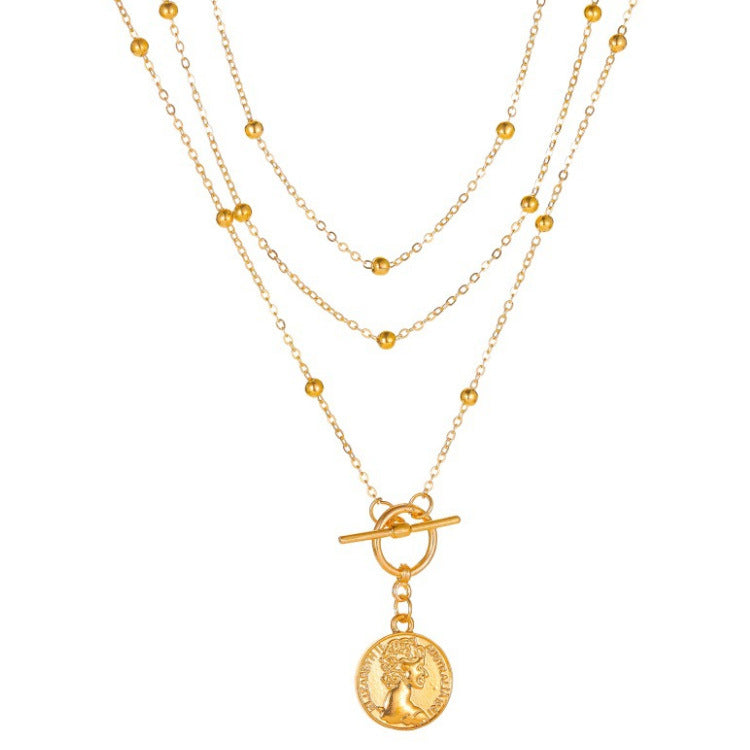 Gold multi-layer portrait pearl necklace ins fashion retro exaggerated pendant clavicle chain female