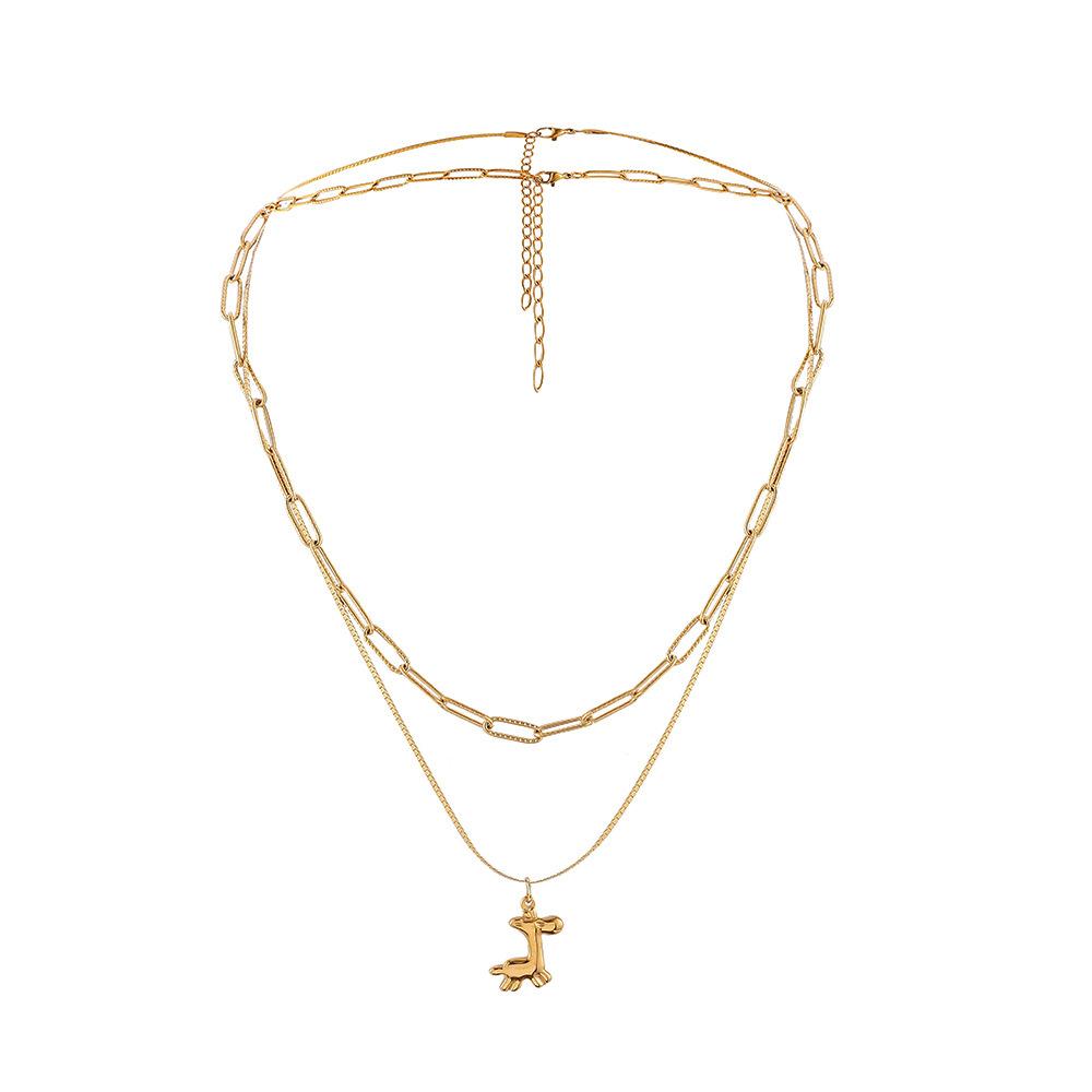 Ins fashion stainless steel balloon dog double-layer pendant titanium steel trend super cool Mori collarbone necklace female