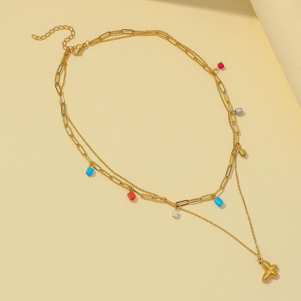 ins stainless steel colorful bead necklace double collarbone chain simple fashion butterfly pendant jewelry