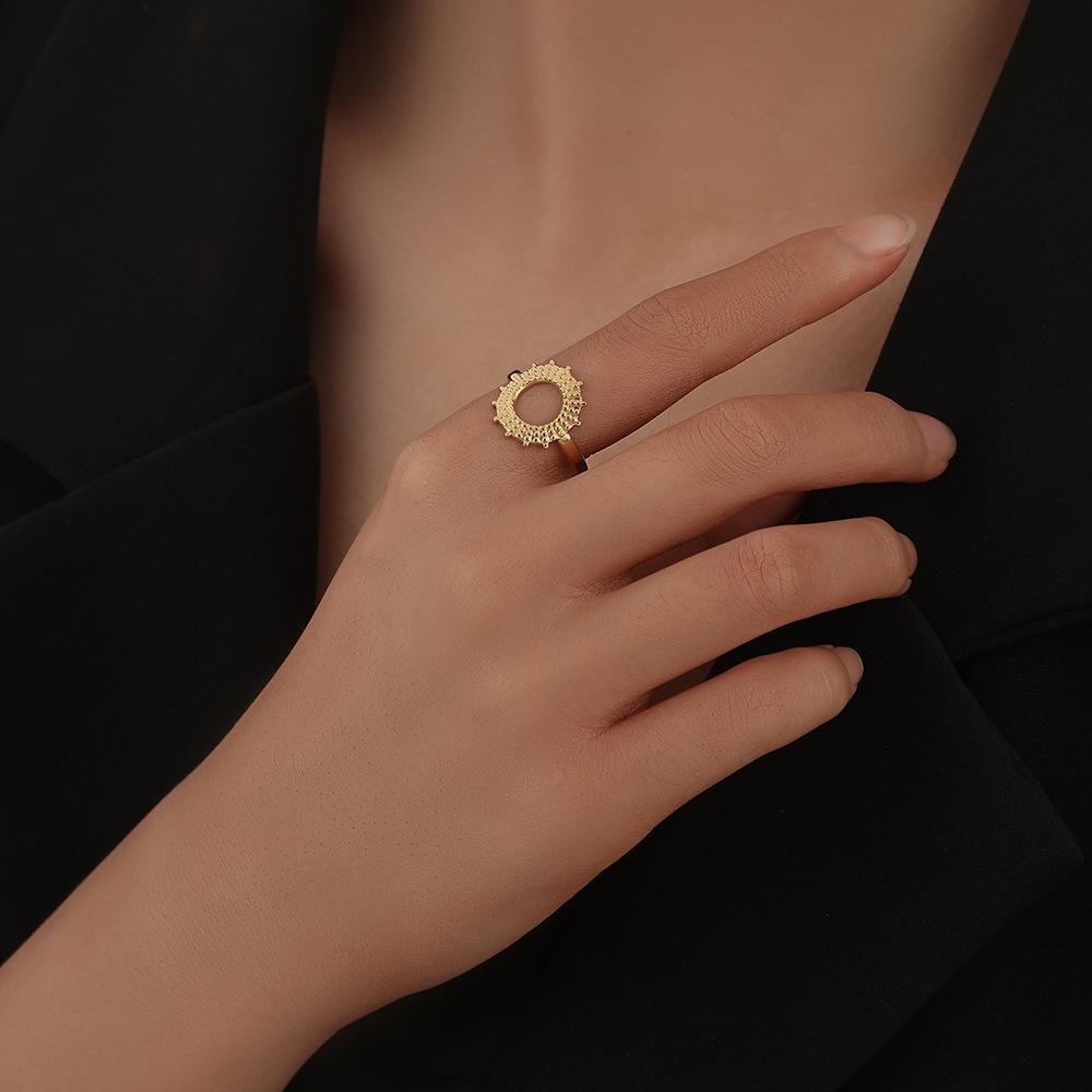Ins trend simple stainless steel hollow sunflower ring titanium steel fashion aesthetic adjustable ring
