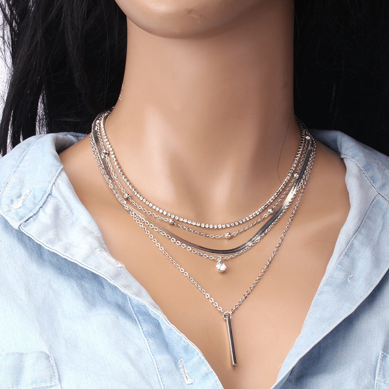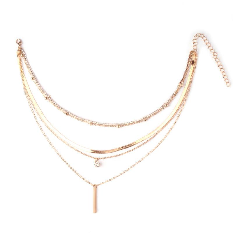 Internet celebrity multi-layer diamond necklace female ins niche design sense temperament snake bone chain trend jewelry