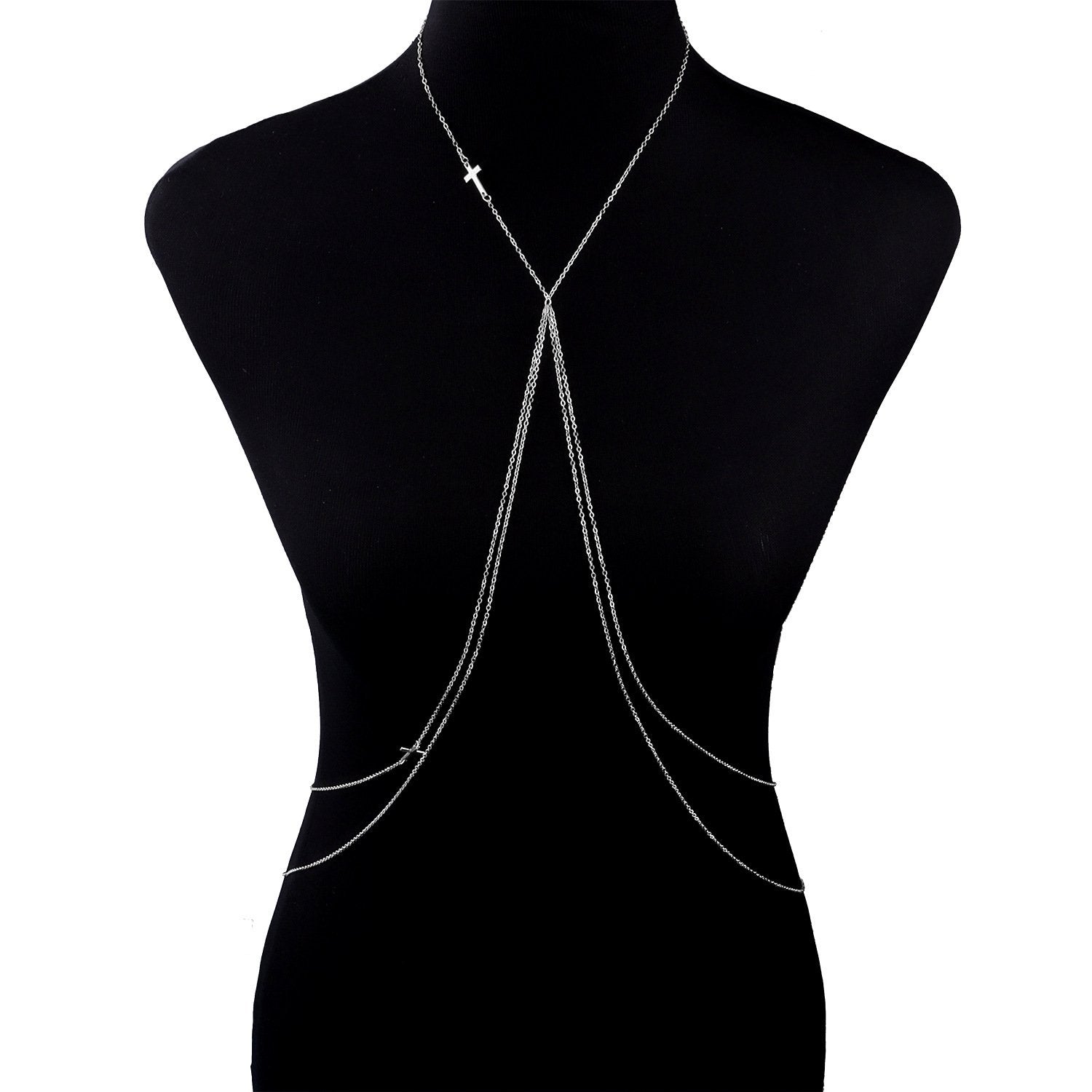 Jewelry Bikini Double Cross Body Chain Simple Sexy Body Chain Chest Chain