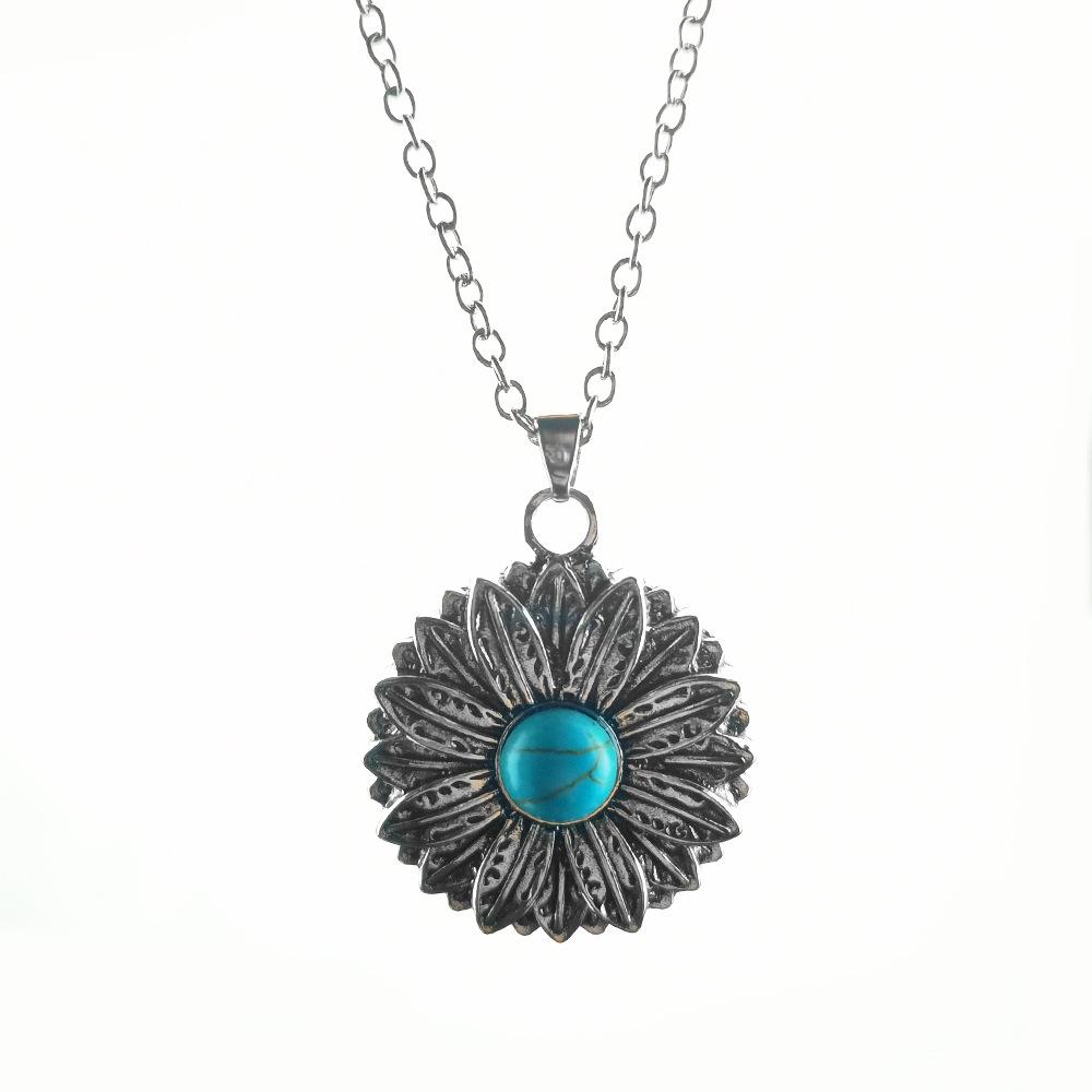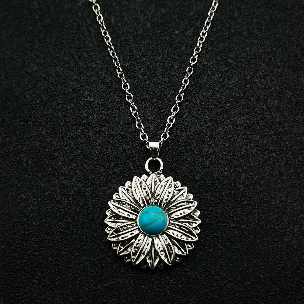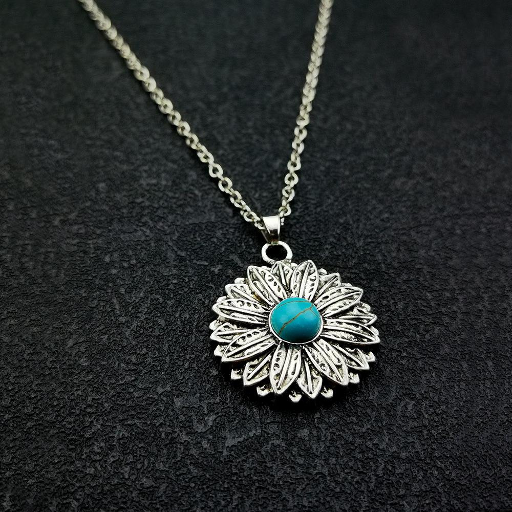 Jewelry Blue Turquoise Sunflower Pendant Necklace Women Vintage Boho Flower Jewelry