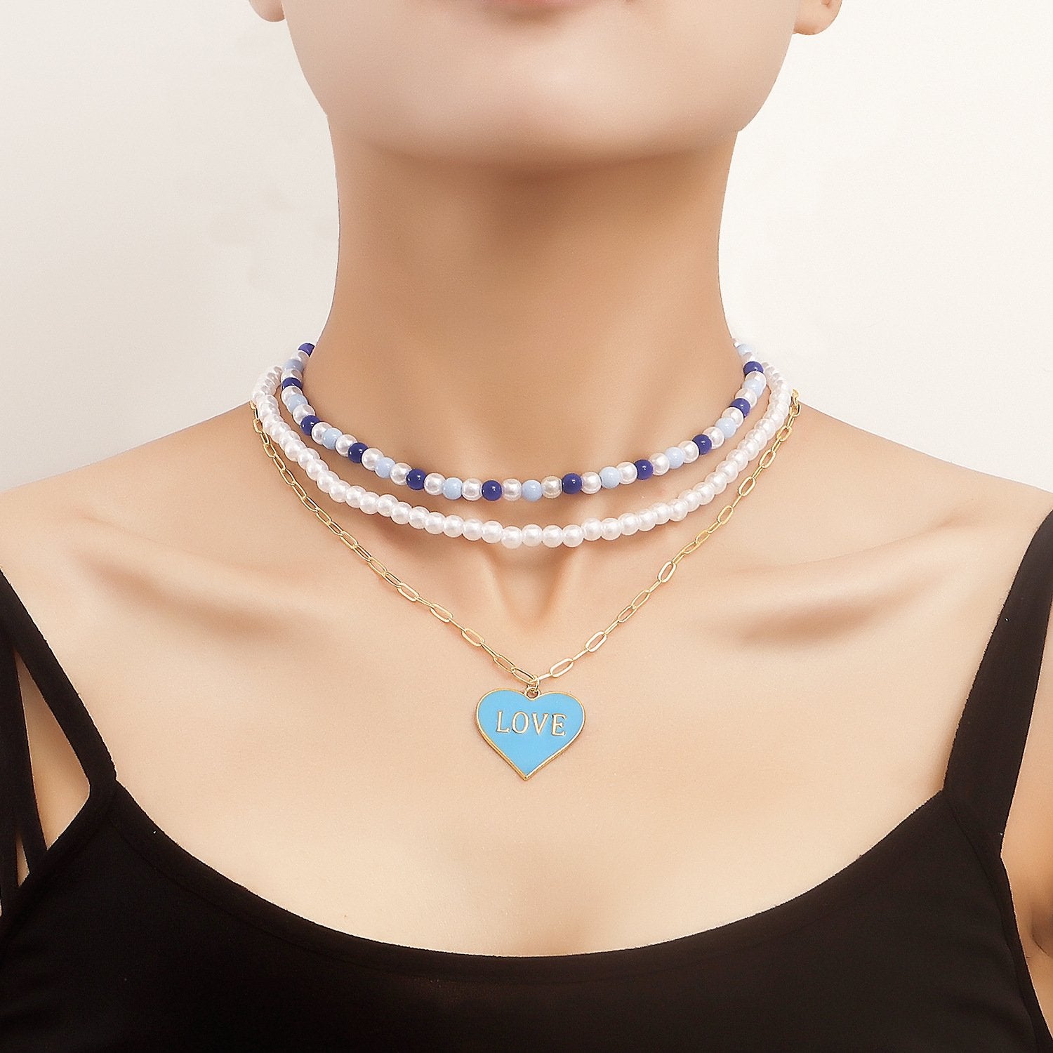 Jewelry Bohemia imitation pearl exaggerated color LOVE love pendant necklace hot girl necklace