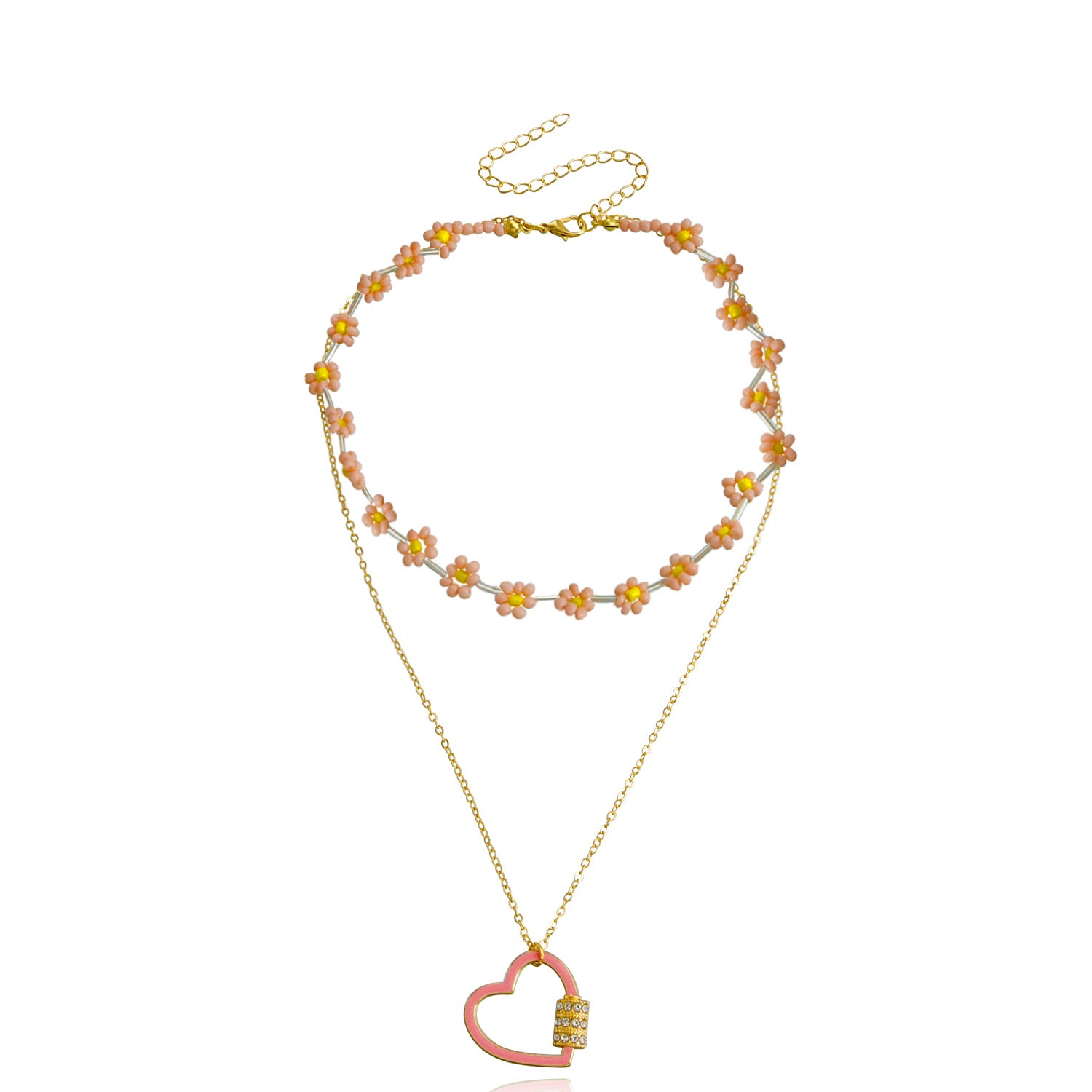 Jewelry Bohemian color rice beads daisy flower love pendant necklace female small fresh necklace