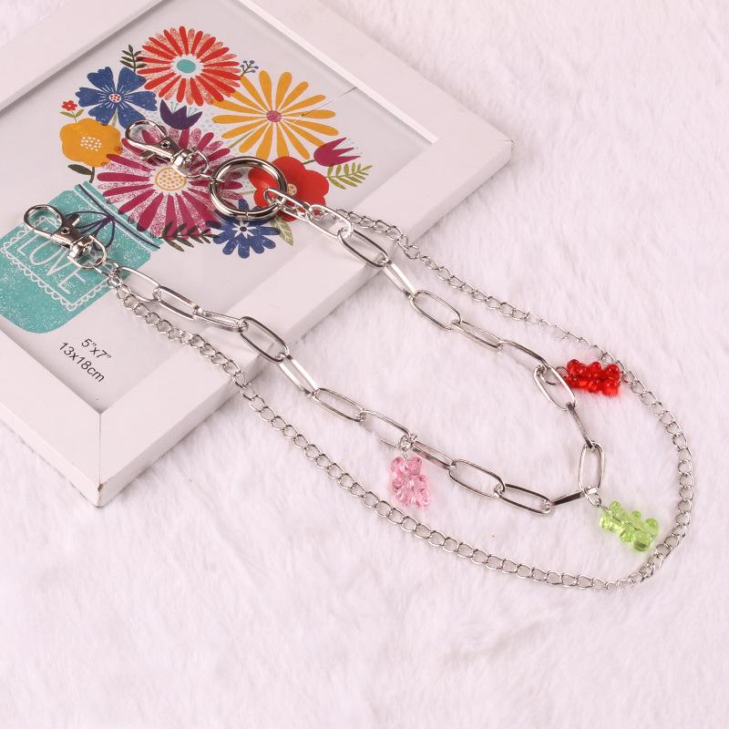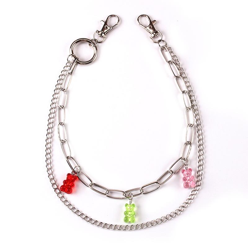 Jewelry bungee di soil cool girl transparent jelly color three bears double waist chain pants chain