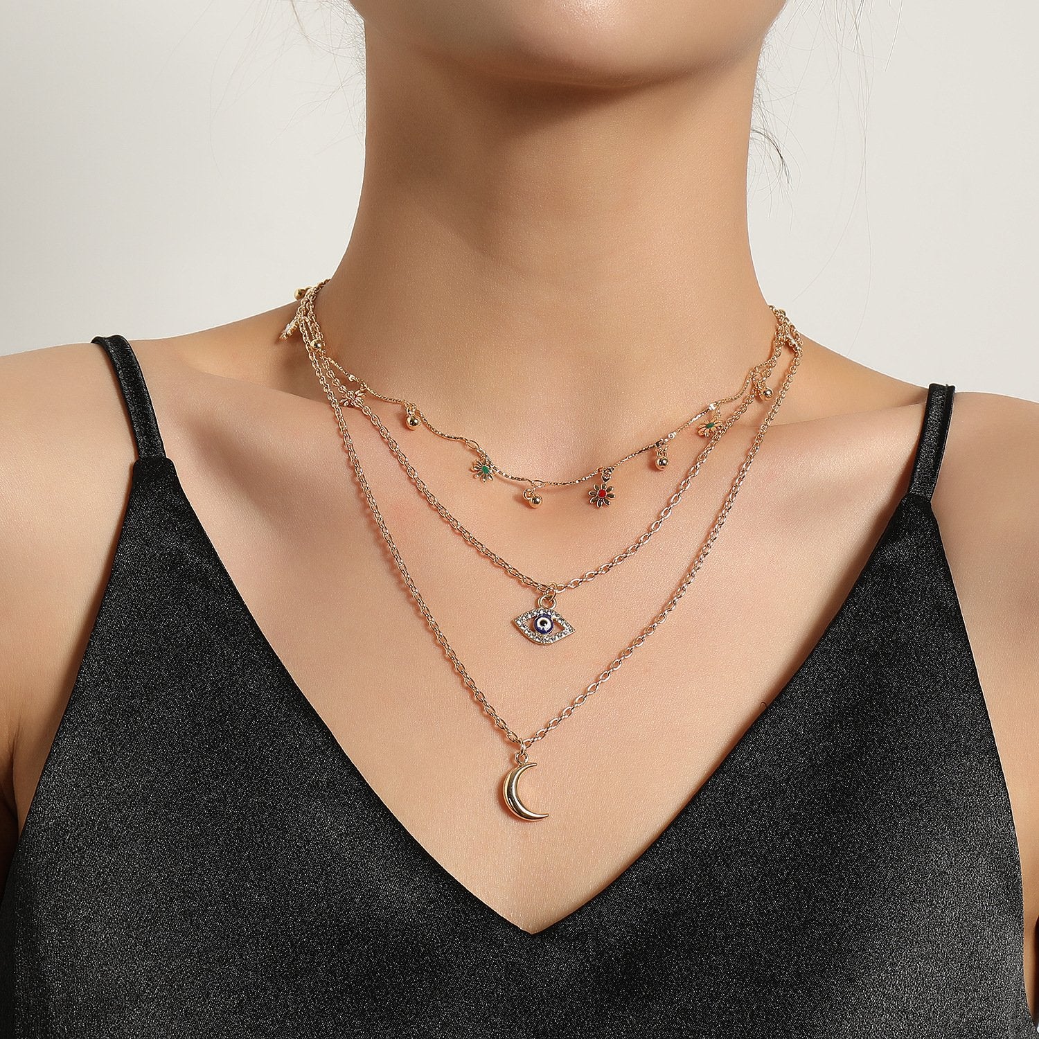 Jewelry curved tube full of diamond eyes crescent pendant necklace female trendy style flower personality pendant